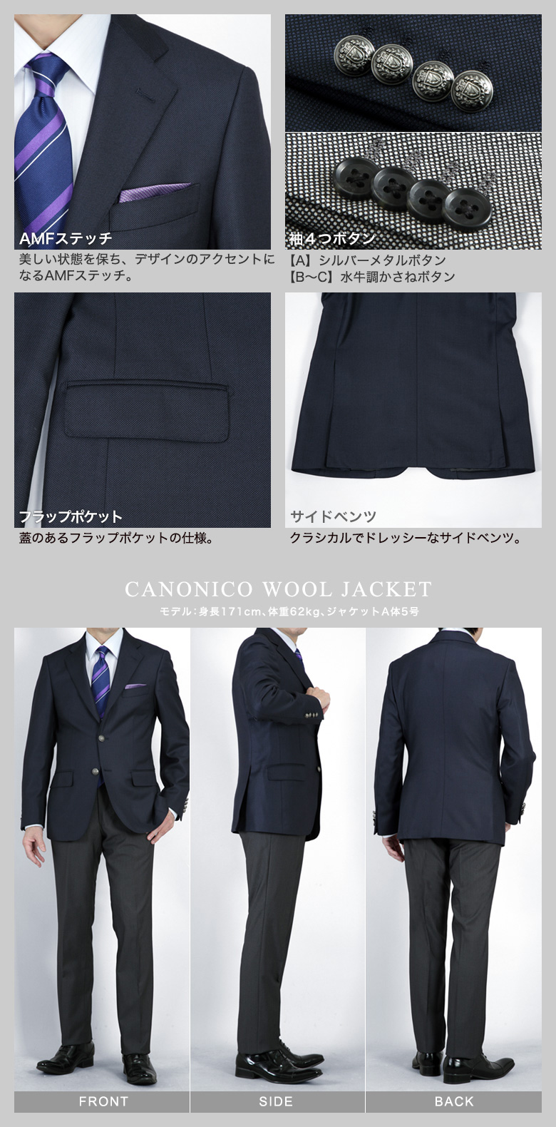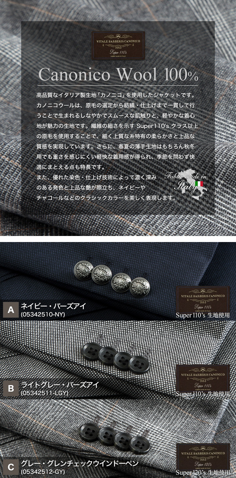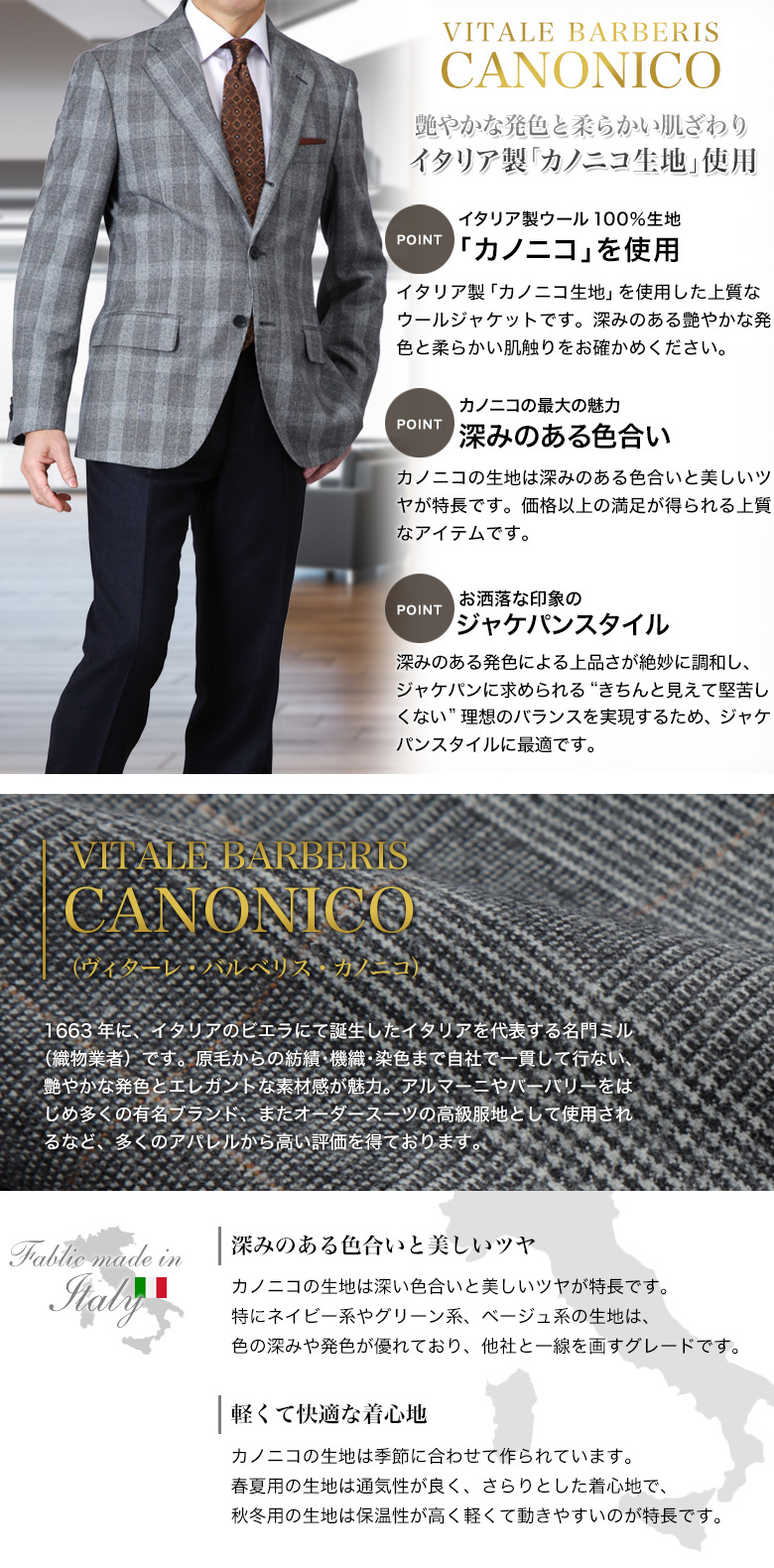 ・表地:ウール100%(CANONICO生地)