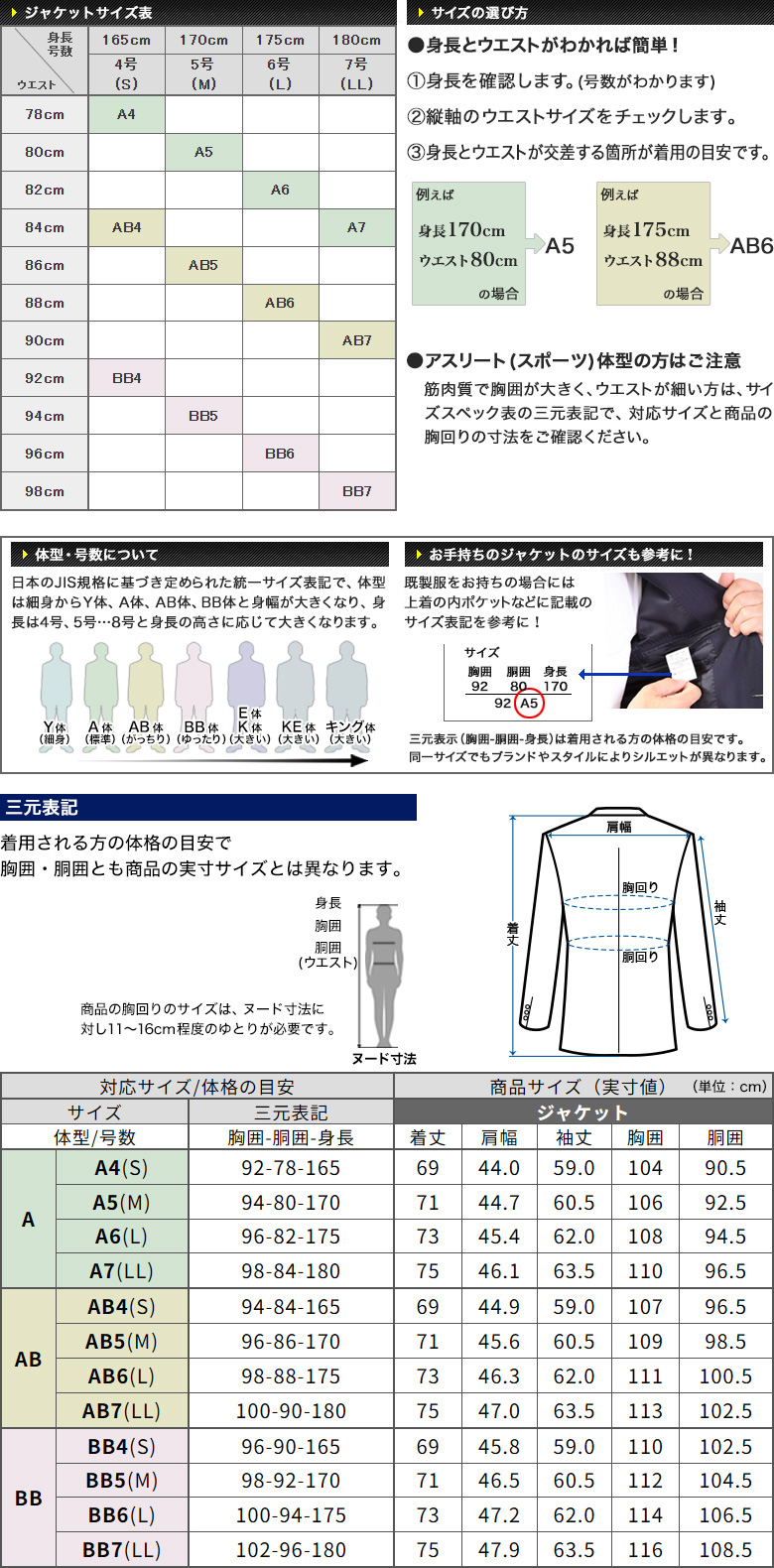 AB4(S) AB5(M) AB6(L) AB7(LL)