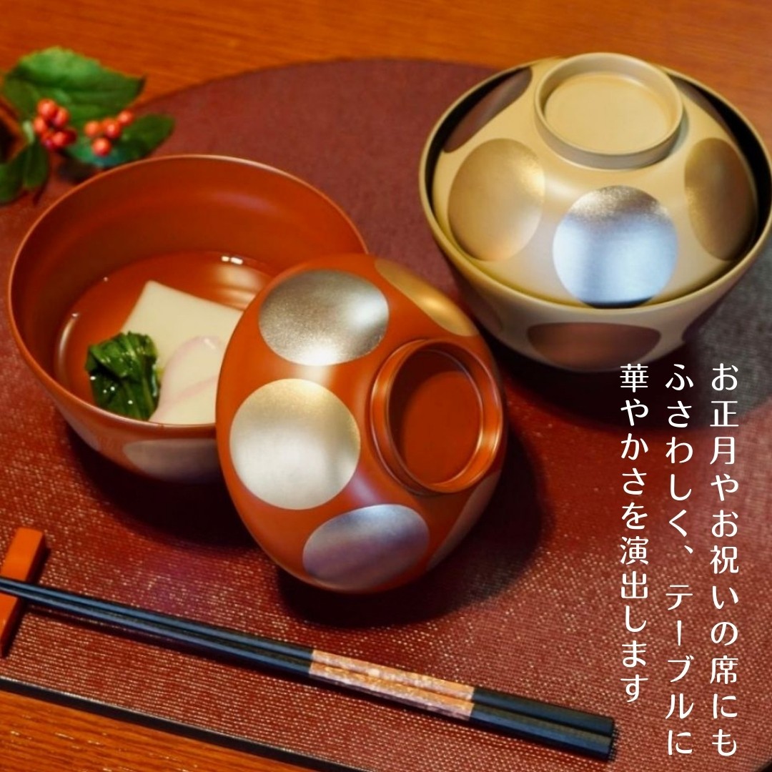 日常使いのお椀としてはもちろん、お正月やお祝いの席にもふさわしく、テーブルに華やかさを演出します。