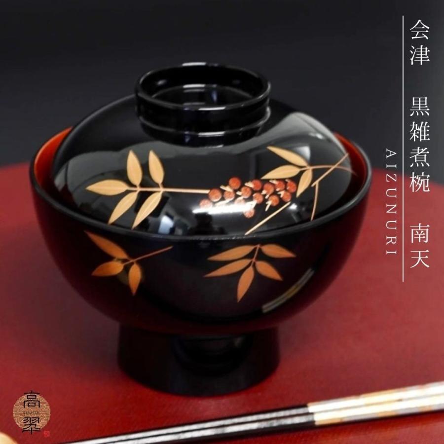 会津 黒雑煮椀 南天 雑煮椀 新入荷 迎春 お正月 慶事 汁椀 蓋付椀 雑煮椀 ...