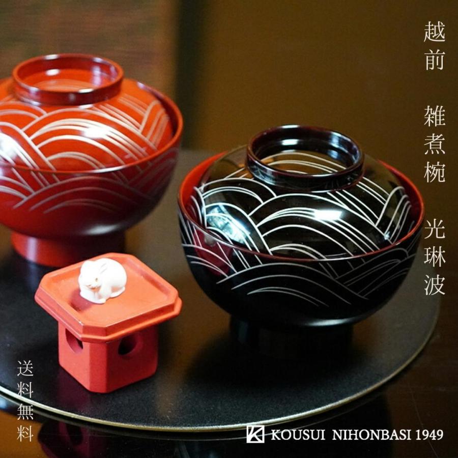 越前 光琳波 朱 雑煮椀 新入荷 迎春 お正月 高翆オリジナル 慶事 越前塗 汁...
