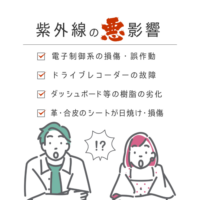 電子制御系やドライブレコーダーの保護、ダッシュボードの劣化防止に効果大です。