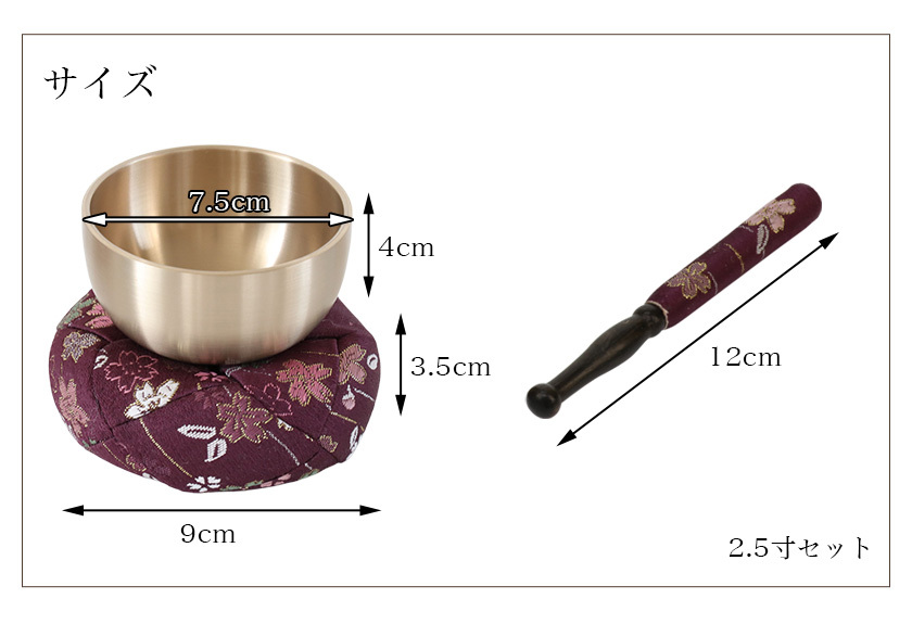 仏壇 おりん 国産 おりんセット2.5寸 さくら柄 直径7.5cm おリン+リン棒+布団 金襴 仏壇 おりん 仏具 おりん ミニおりん リン おりんセット