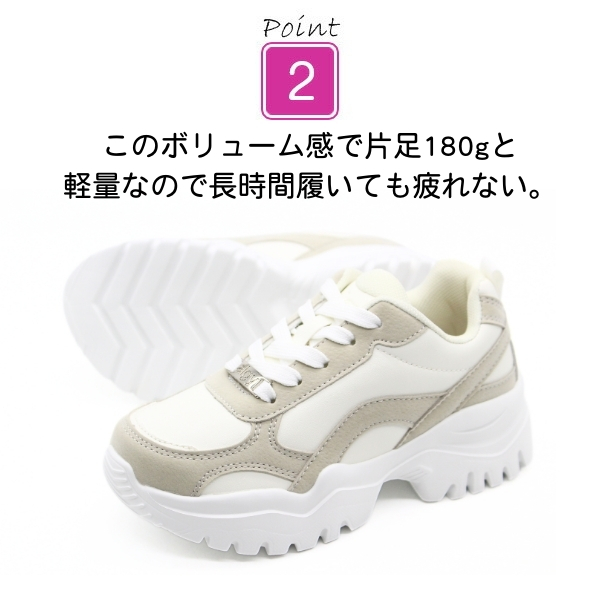 このボリューム感で片足180gと軽量なので長時間履いても疲れません。
