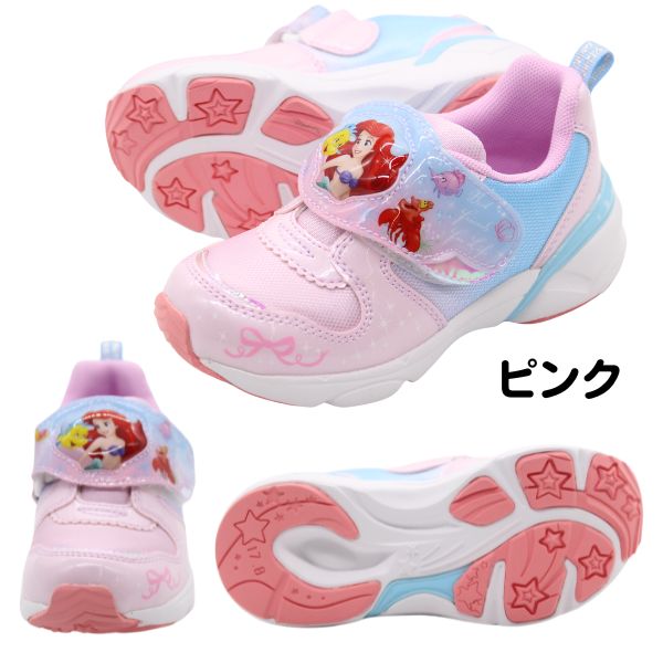 ディズニー スニーカー キッズ ジュニア 子供 靴 光る ピンク Disney ディズニープリンセス ラプンツェル アリエル ムーンスター moonstar DN C1358LE