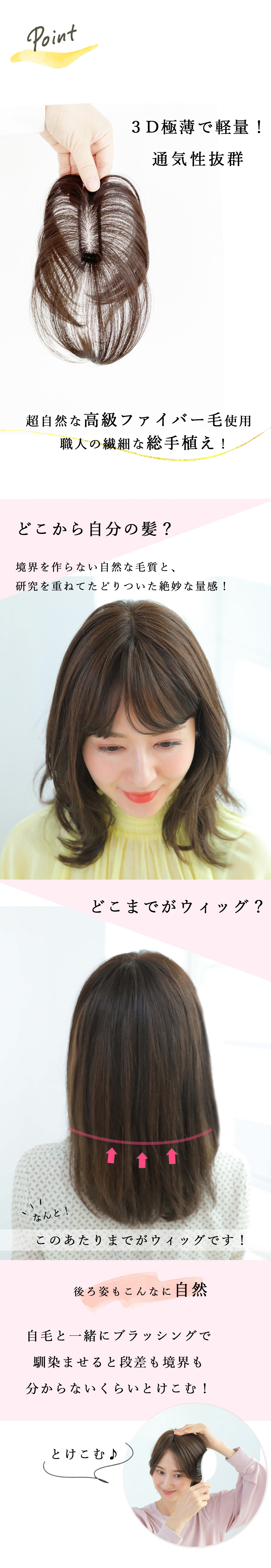 3D極薄軽量タイプで”一瞬で地毛にとけこみ”自然な馴染みスタイルが完成。