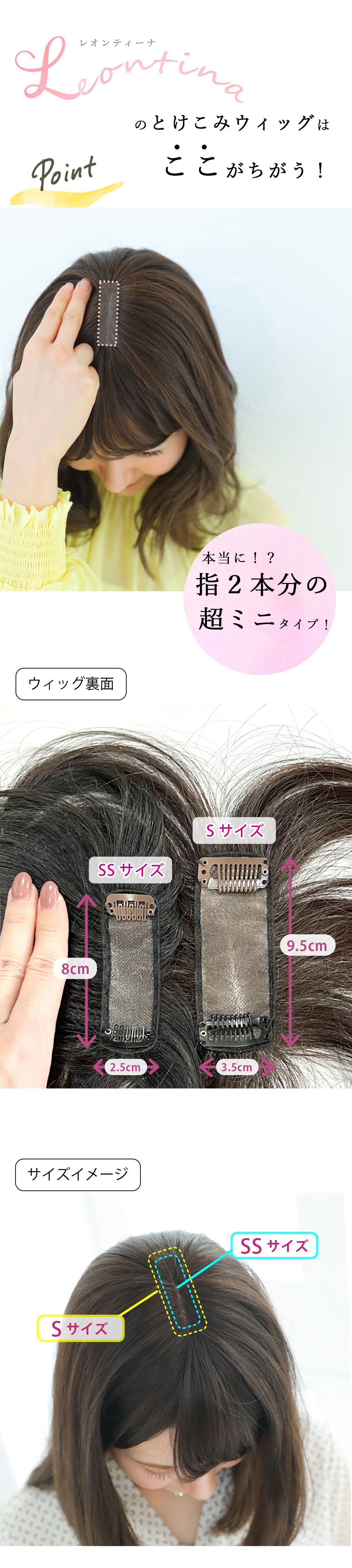 女性 ロング 前髪 トップピース 頭頂部 つむじ 分け目 結べる