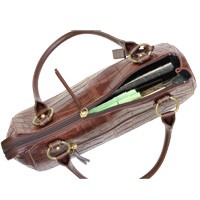 抑え気味のツヤ感が上品な人気のクロコダイル型押しミニボストン、