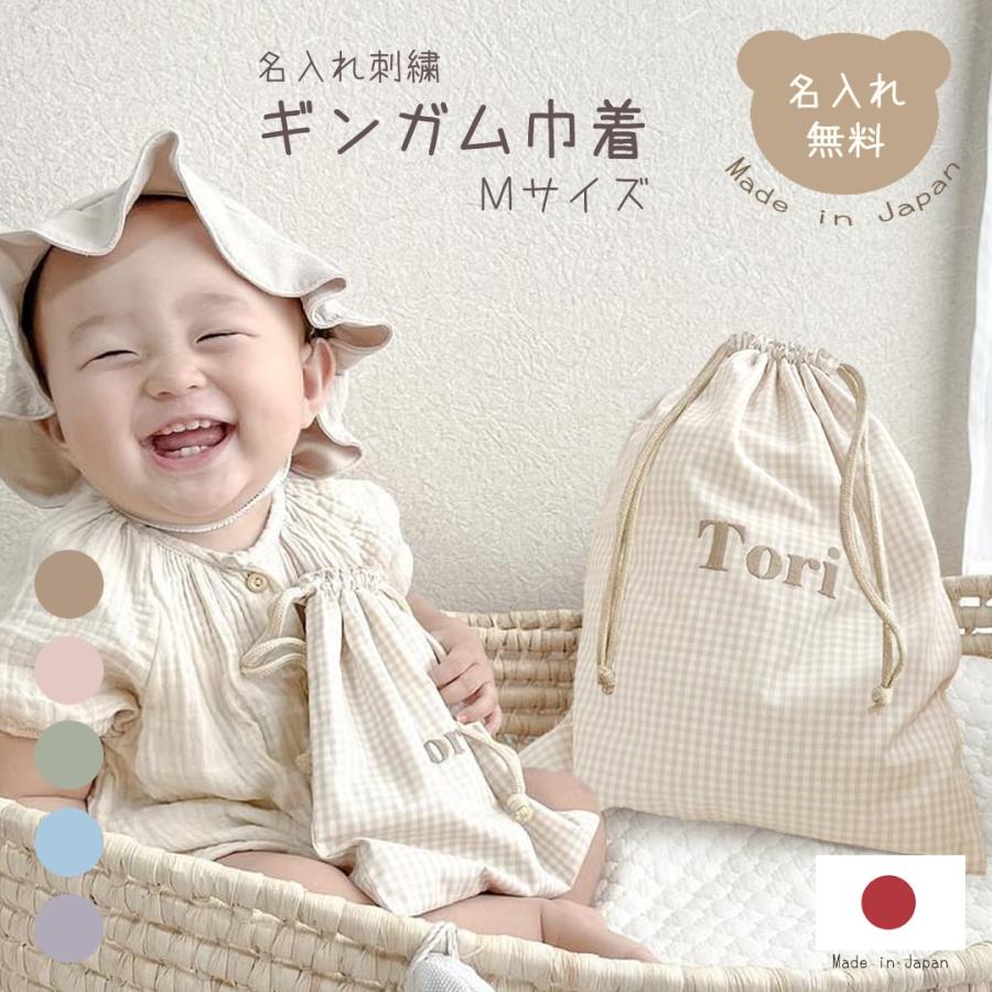 名入れ 刺繍 巾着 Mサイズ 日本製 かわいい バッグ ブランド 子供かわいい ...