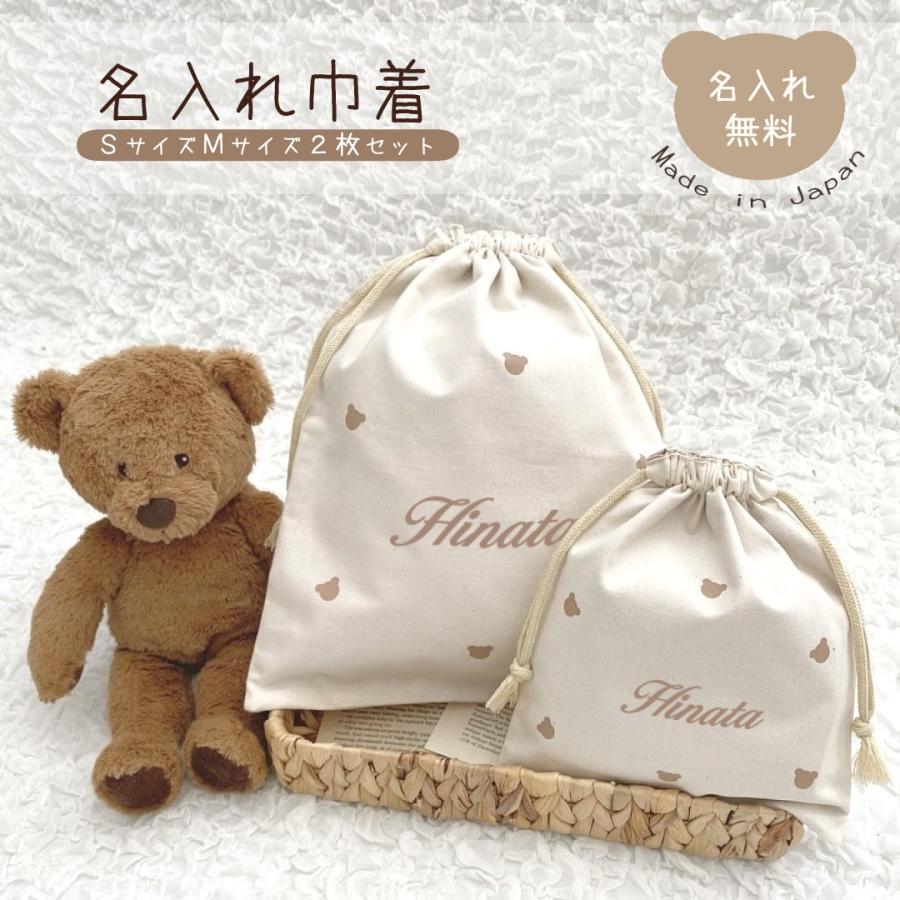 名入れ 巾着 SサイズMサイズ 2枚セット 日本製 体操着袋 くま 恐竜 おむつ...