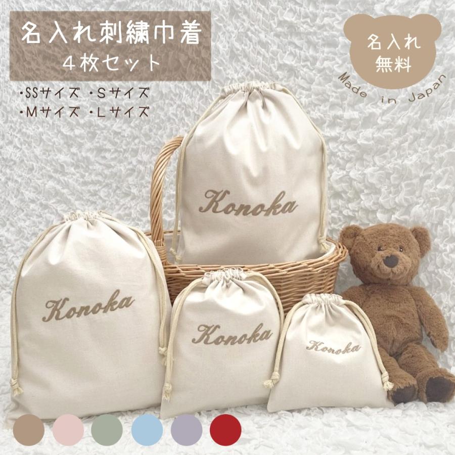 名入れ 刺繍 巾着 SSサイズSサイズMサイズLサイズ 4枚セット 日本製 体操...