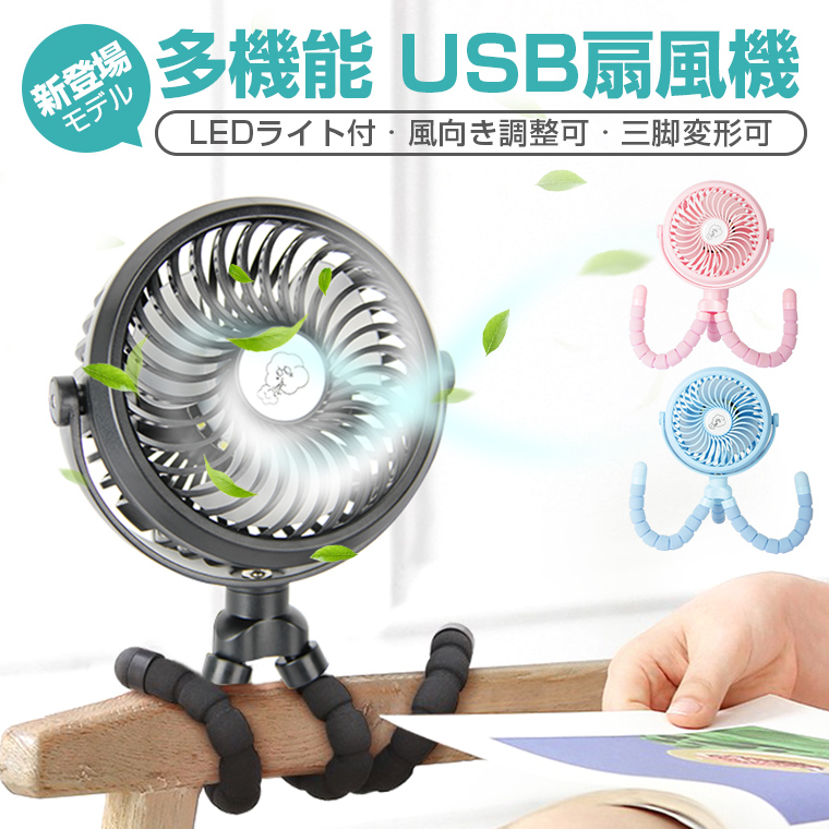 8%OFF 扇風機 小型 おしゃれ 2500mAh ミニファン USB 3脚 卓上 手持ち 巻き付け 静音 強力 ベビーカー 節電 3段階風量調節 ミニ扇風機 LEDライト プレゼント