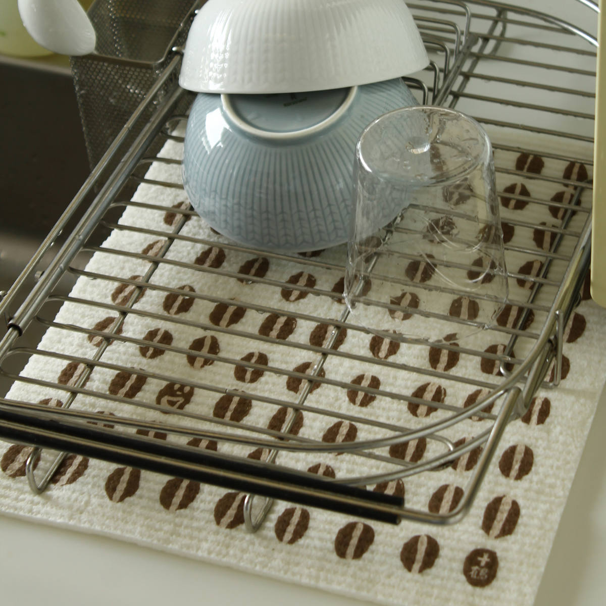 水切りマット e.スポンジワイプ 十鶴 コーヒー豆 岡理恵子 夏の村 水切り ( ふきん スポンジワイプ 布巾 フキン 台拭き 食器拭き )