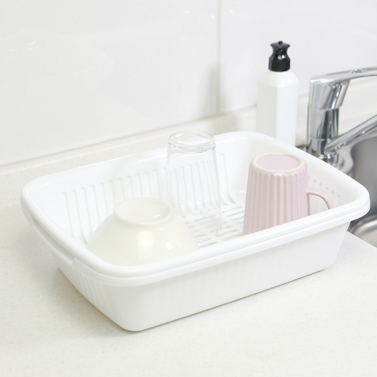 洗い桶 食器 洗い 乾燥 ラック ディッシュラック ちょっと洗い 白 ホワイト プラスチック製 水切り籠 シンク上 シンク横 自然乾燥 シンク回り シンク周り 食器立て 水きり ステンレス水切りカゴ 水切り収納 キッチン収納 キッチン雑貨 キッチン用品 台所用品 キッチングッズ 水回り用品 便利 役立つ おしゃれ おすすめ オススメ ディッシュスタンド シンプル スタイリッシュ LH17846