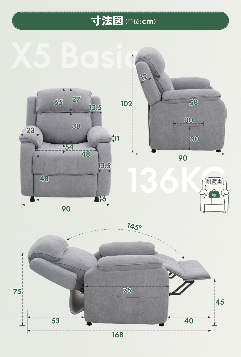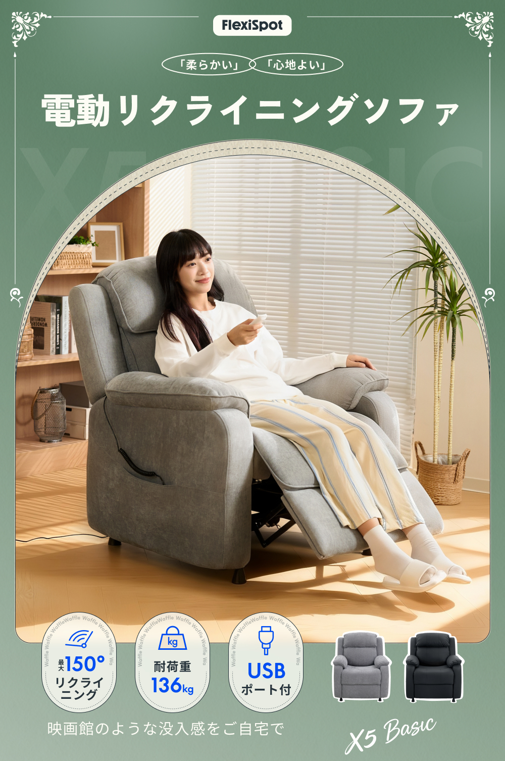 リクライニングチェア 電動 USB付き 1人掛け リクライニングソファ FlexiSpot X5 Basic オットマン付き ネイル 電動ソファ おしゃれ 一人用 プレゼント 爆買