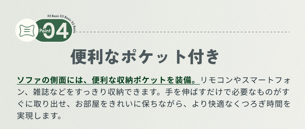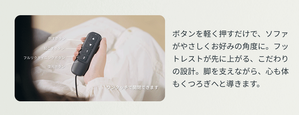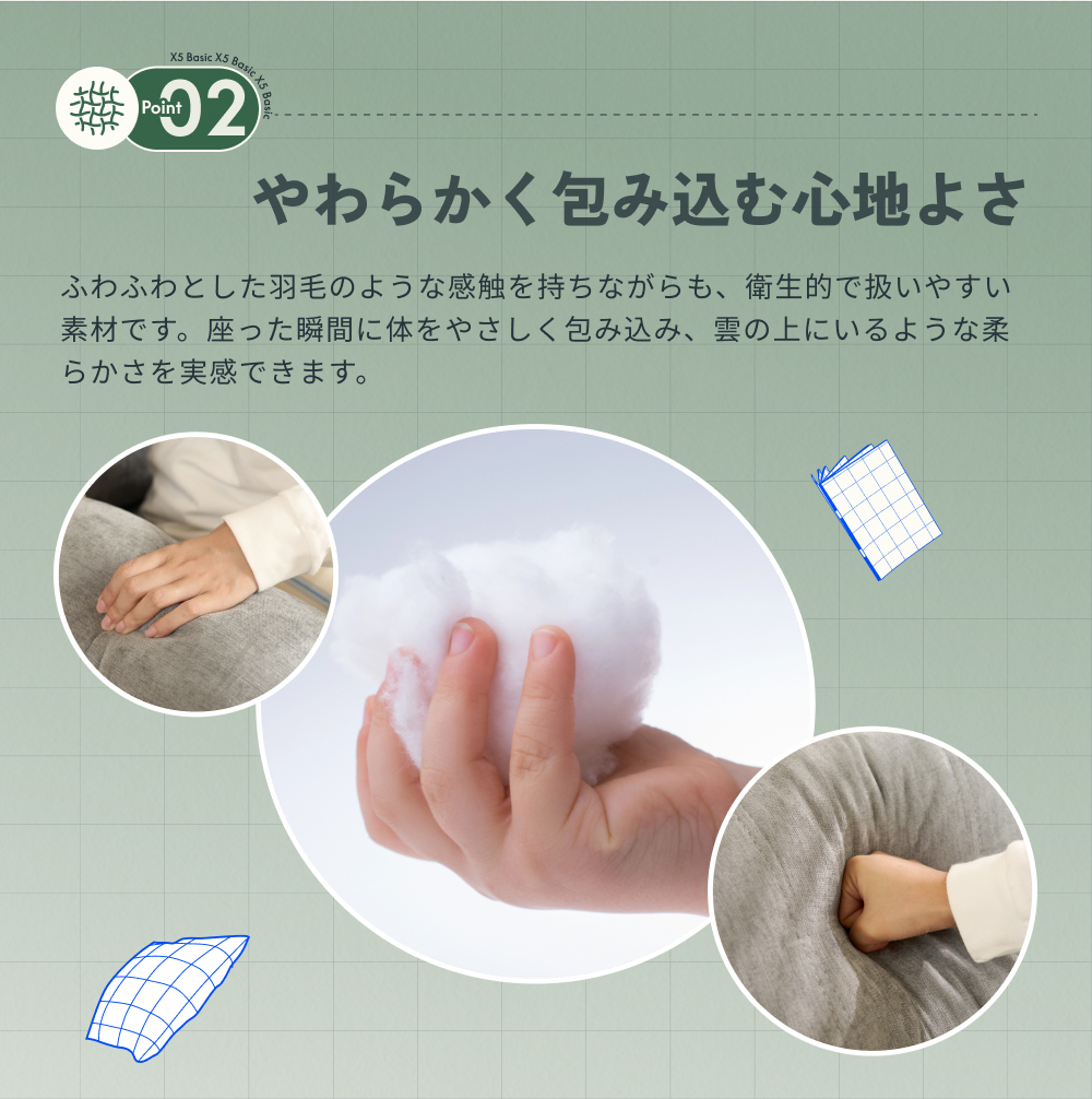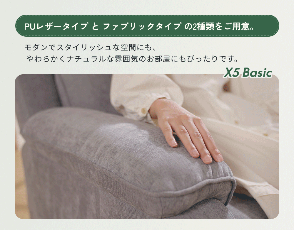 ・耐久性に優れた柔らかい素材:ファブリック生地を使用します。柔らかな肌触りで、温かみのある落ち着いた印象。