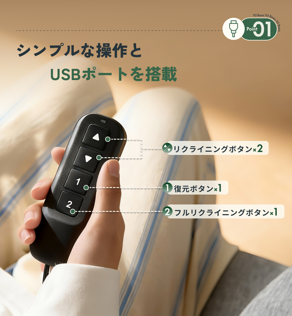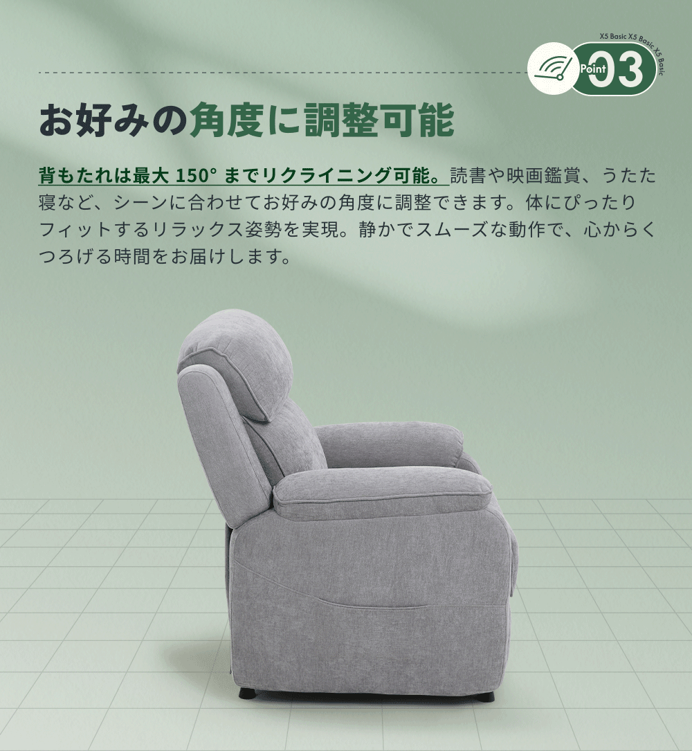 リクライニングチェア 電動 USB充電付き フレキシスポット X5