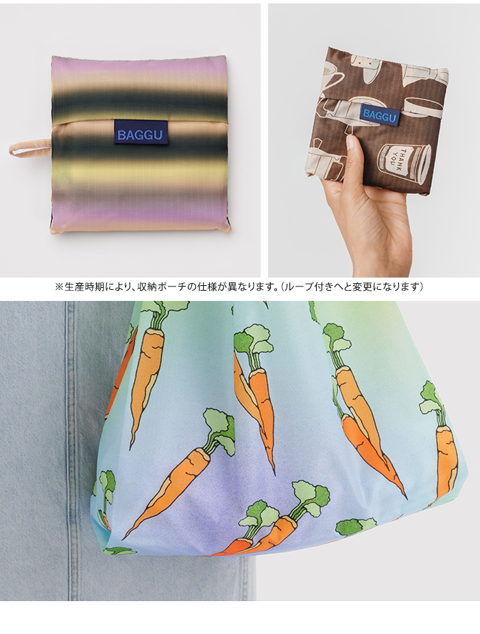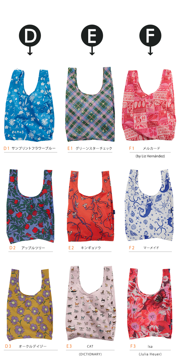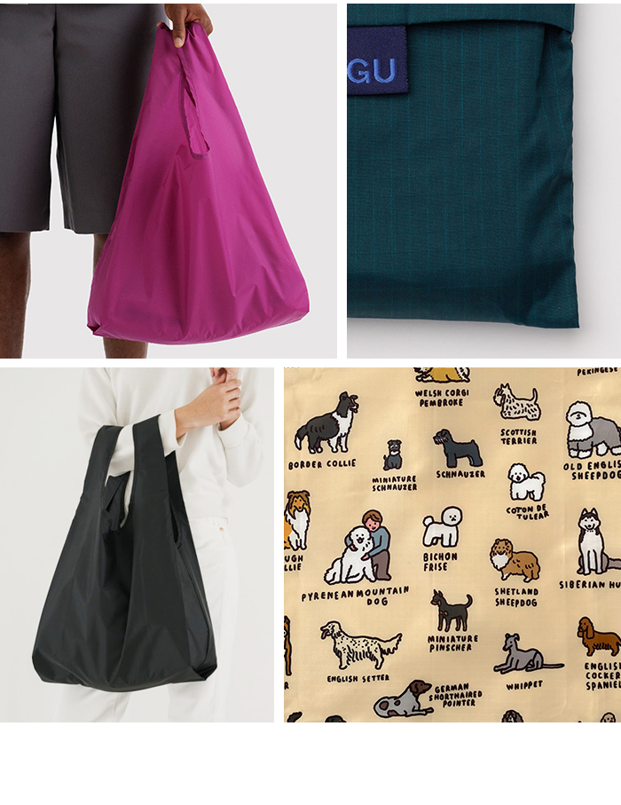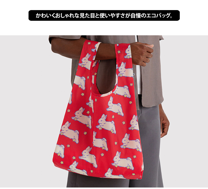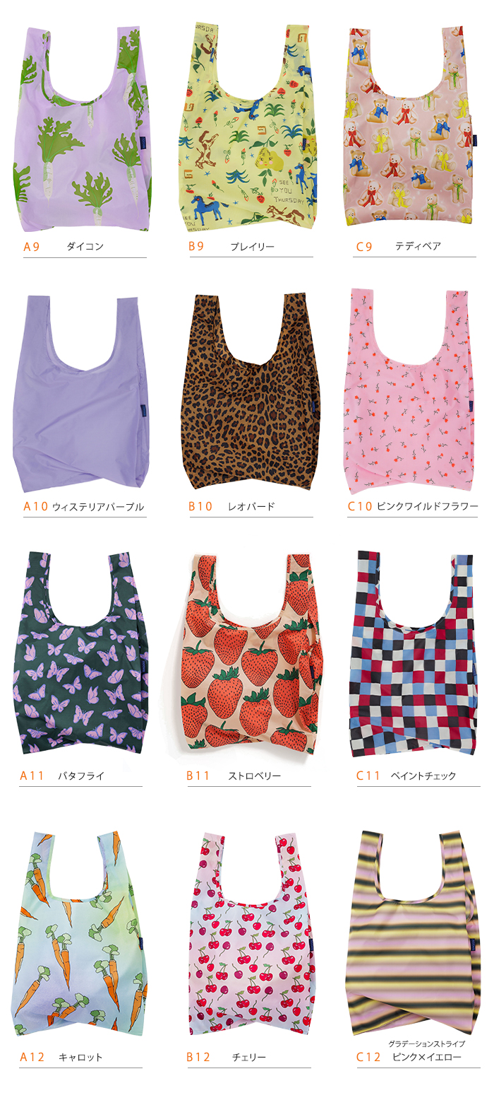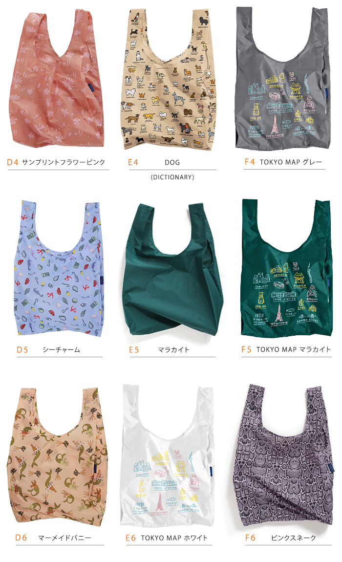 2025 新柄入荷。BAGGUの定番サイズ。100%リサイクル素材で地球に優しい。耐荷重15kgの頼れるエコバッグ。豊富なデザインから選べます。