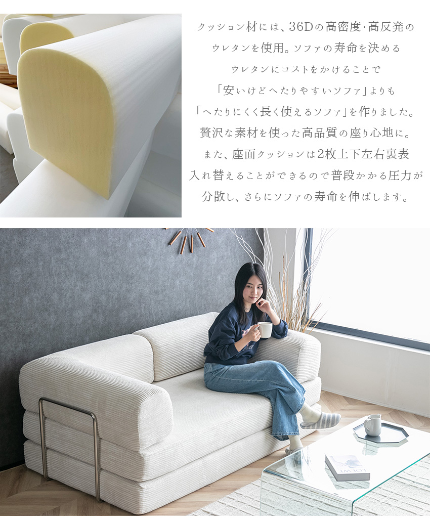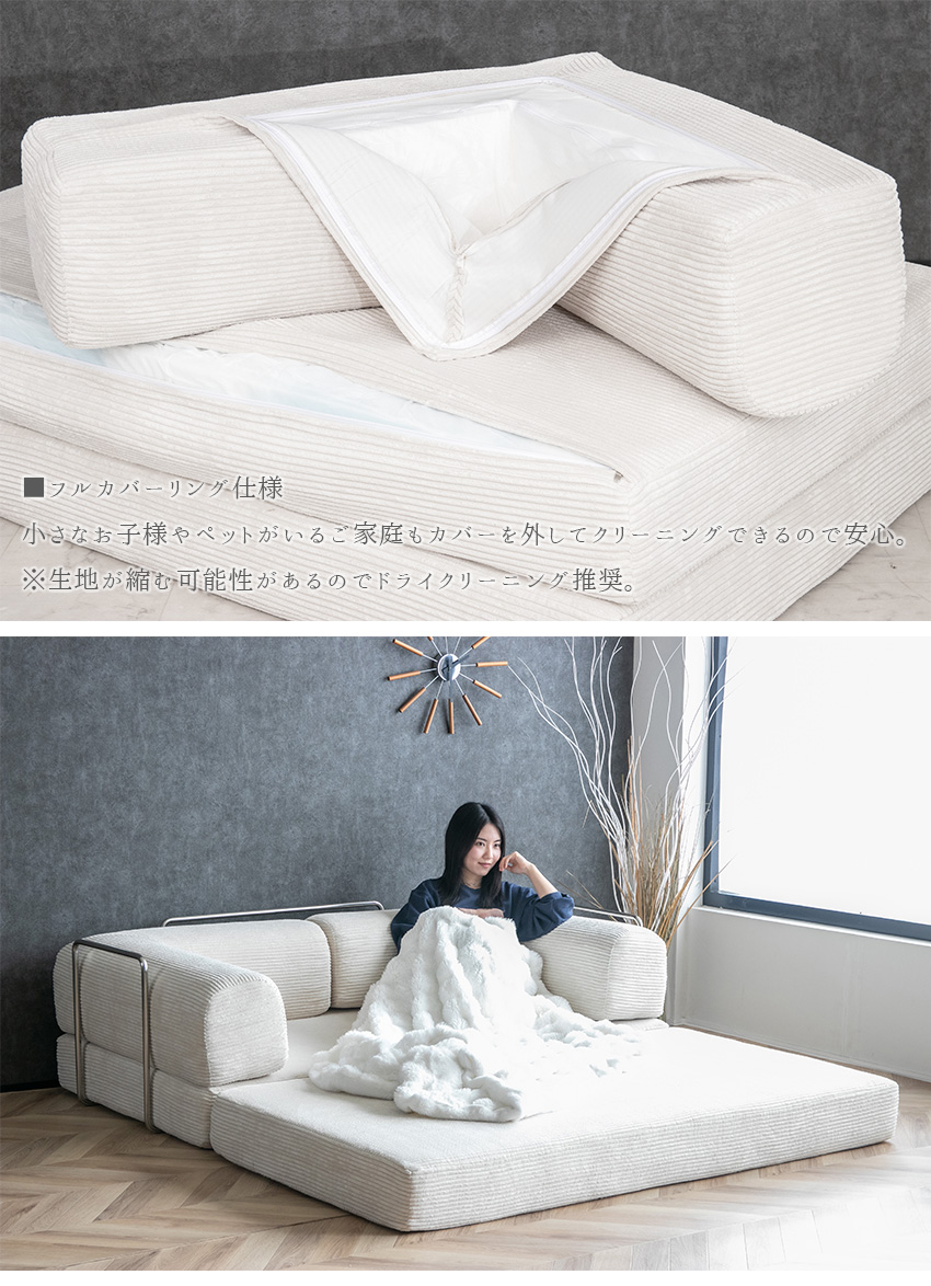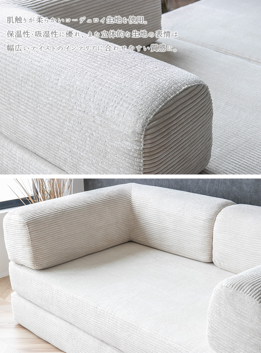 ソファやベッド、プレイマットとして使えるデザイン性に優れたコーデュロイソファ「SNOOZY スヌージー」。