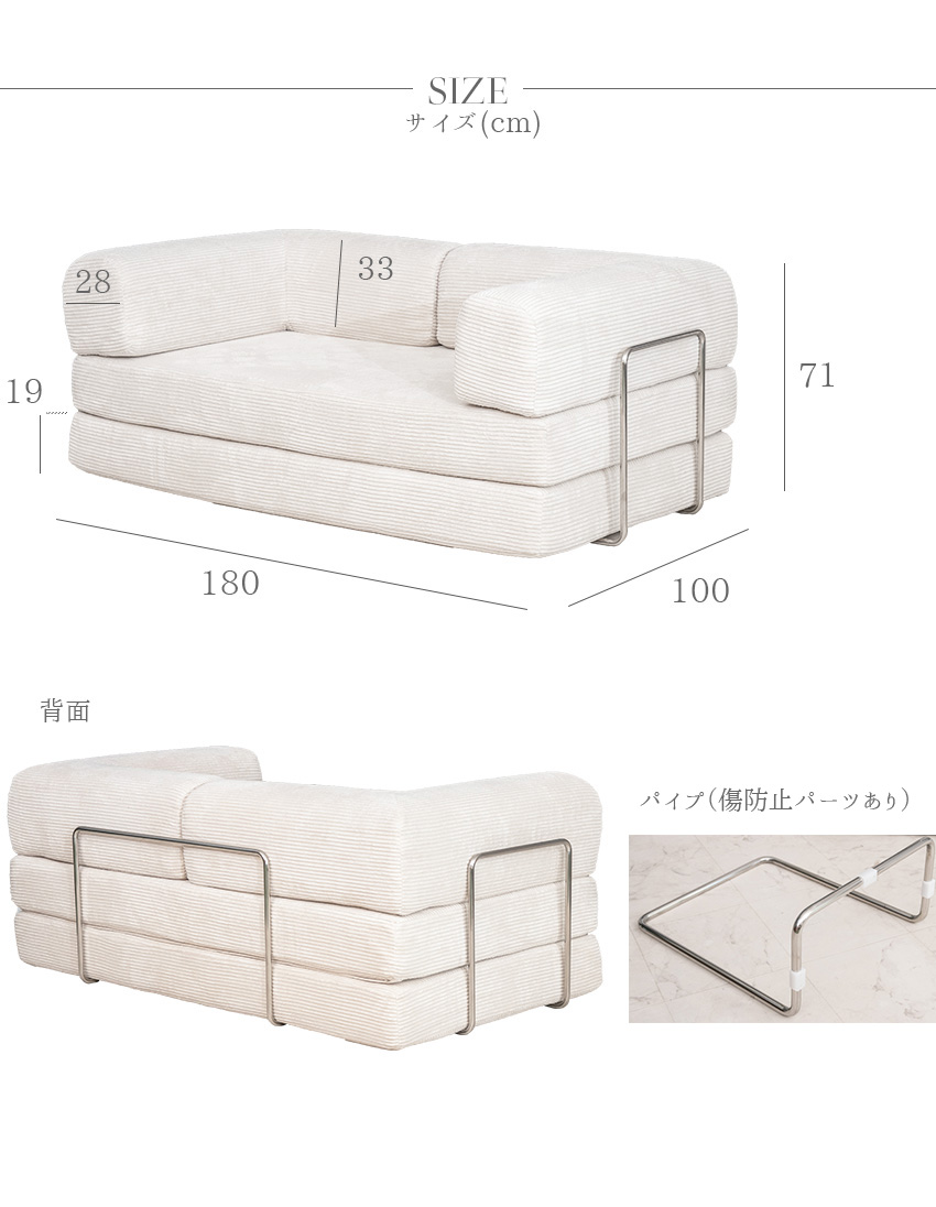 幅180×奥行き100×高さ71cm / 座面高:38cm