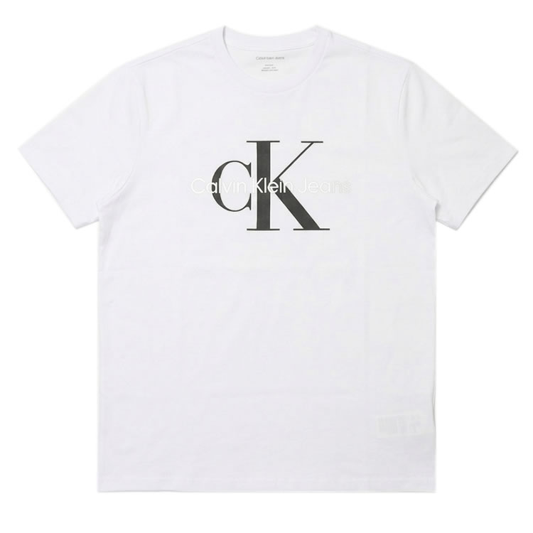 カルバンクライン Calvin Klein Tシャツ 半袖 クルーネック 丸首 メンズ コットン CK ロゴ プリント おしゃれ 大きいサイズ ブランド 白 ホワイト