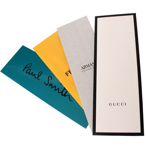 有名ブランド各社の公式「ネクタイケース」。紙製の薄型なのでネクタイ等のコンパクトなものを入れるのに最適。ブランドもののネクタイに専用ケースが付属していない場合におすすめ。ご一緒にアルマーニのネクタイやグッチのネクタイをご購入するとそのままプレゼント用としてお使いいただけます。卒業祝や就職祝、成人祝の際にどうぞ。