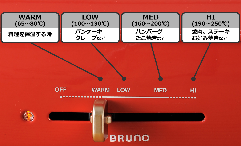 コンパクトなボディながら保温〜250℃まで無段階温度調節ができるので、ステーキやパエリアなど本格的なレシピも楽しめます。