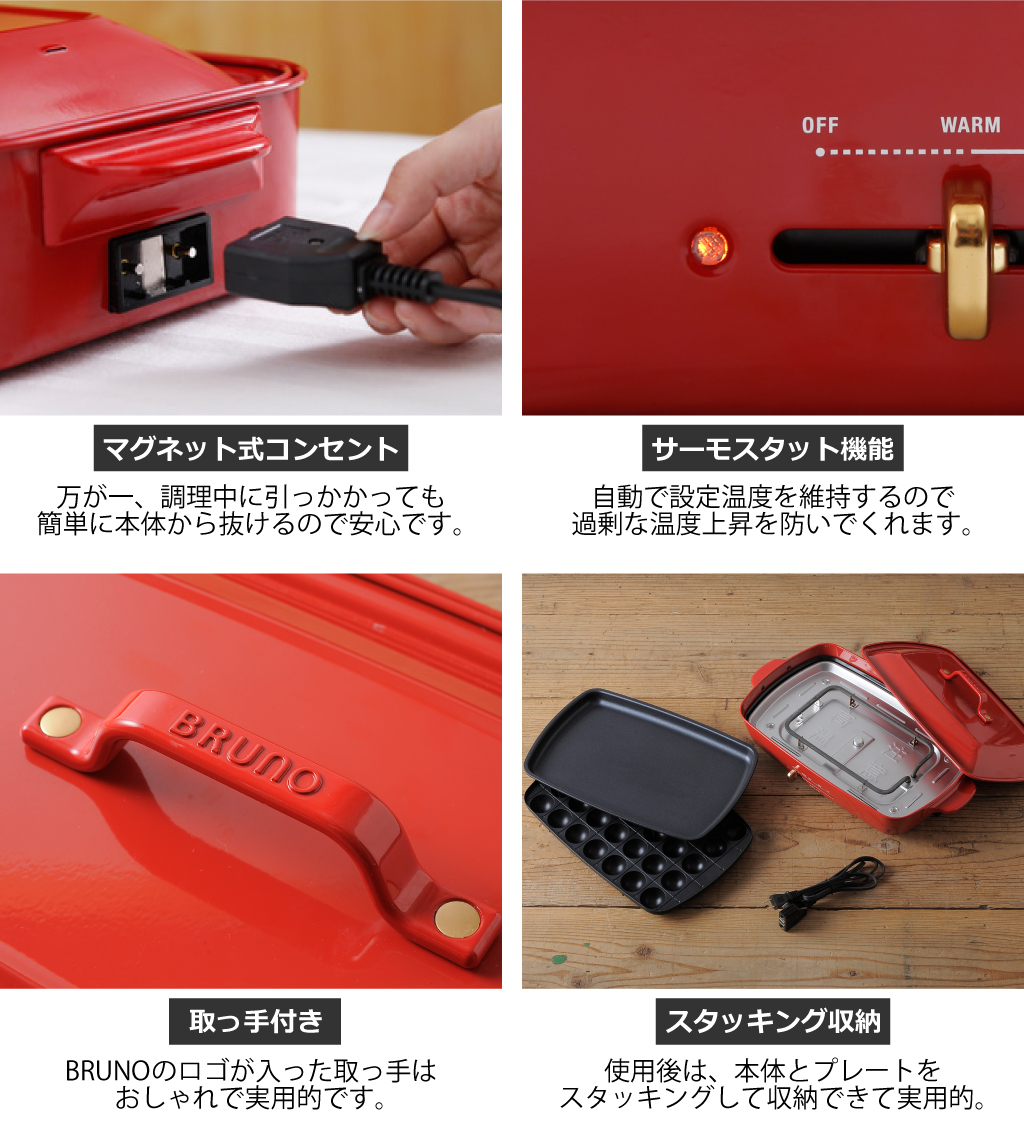■付属品:平面プレート・たこ焼きプレート・フタ・マグネット式着脱電源コード