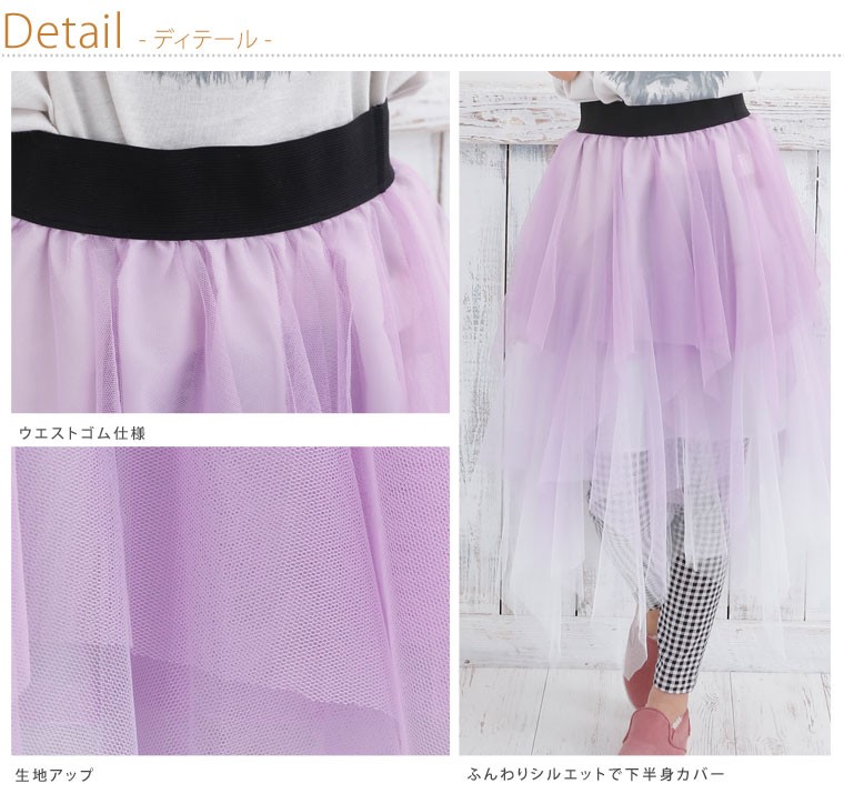 ふんわりシルエットで下半身カバー◎パステルカラーチュールスカート