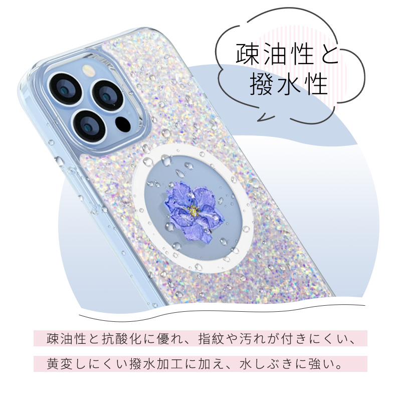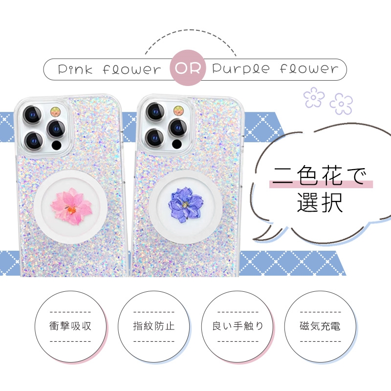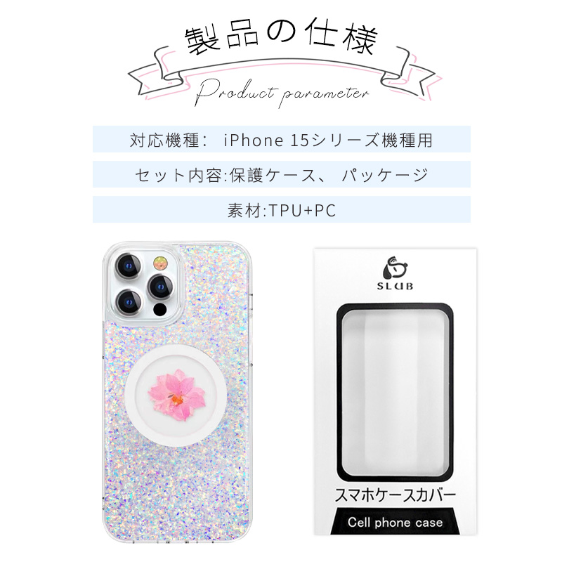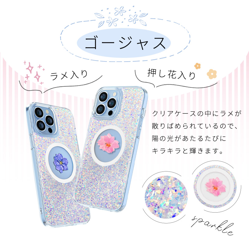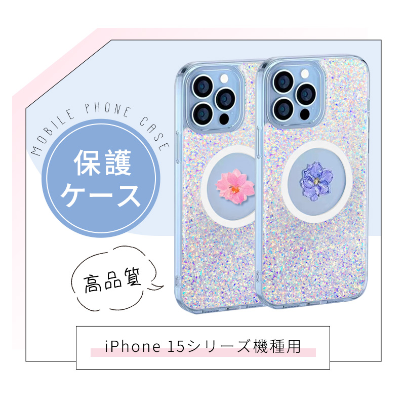送料無料 iPhone15ケース フラワーモチーフ 押し花入り