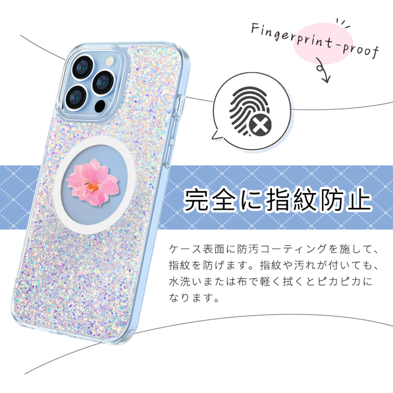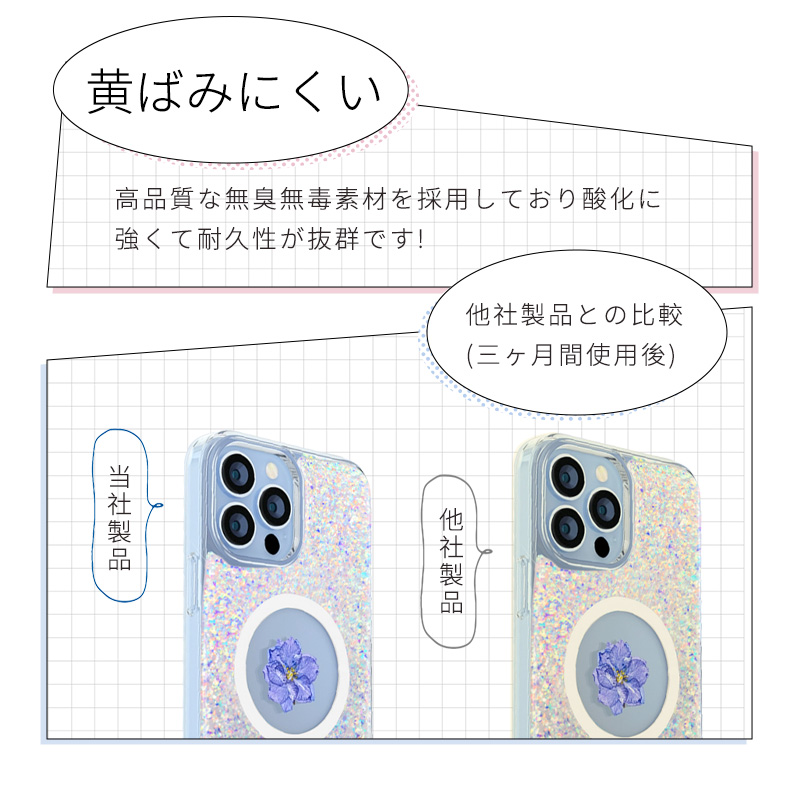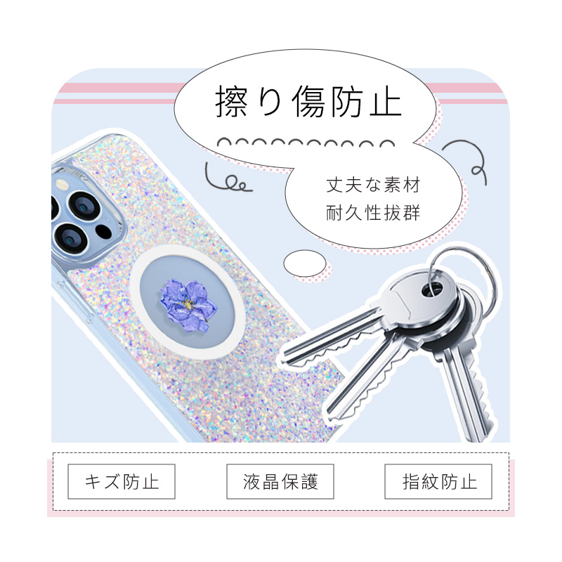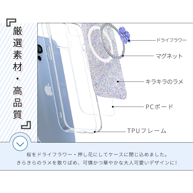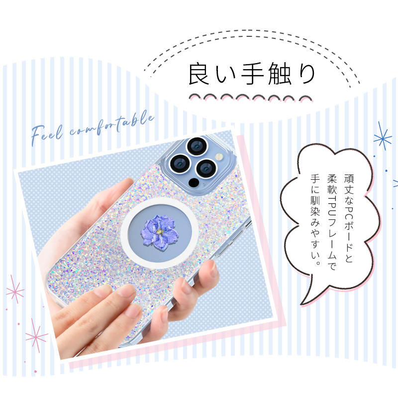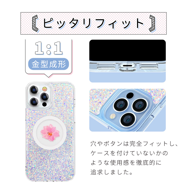 送料無料 iPhone15ケース フラワーモチーフ 押し花入り