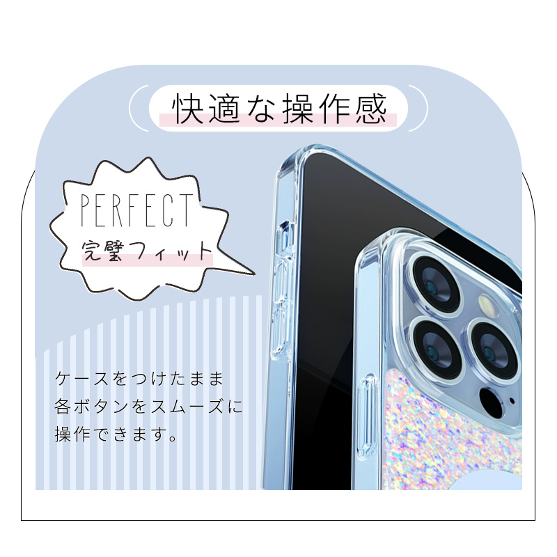 衝撃やキズなどからスマートフォンを守るのはもちろん、カメラや各種ボタンなどをケースに入れたままスムーズに操作できます。