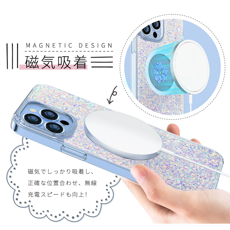 強力なマグネットを搭載しており、magSafe充電器としっかり接続でき、つけたまま、iPhoneにワイヤレス充電できるのが特徴です。