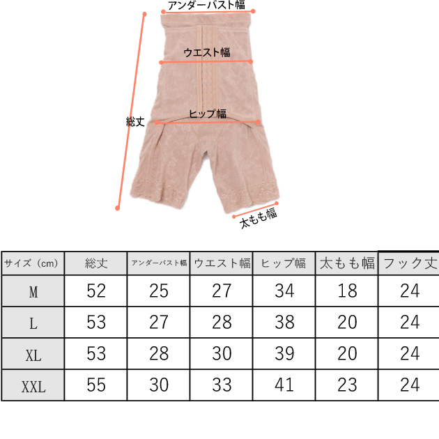【XL】総丈:53cm/アンダーバスト幅:28cm/ウエスト幅:30cm/ヒップ幅:39cm/太もも幅:20cm/フック丈:24.2cm/フック個数:13個/