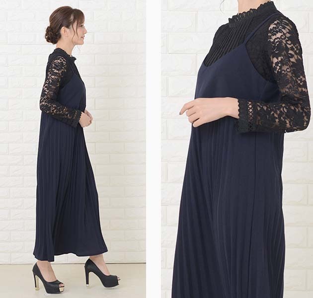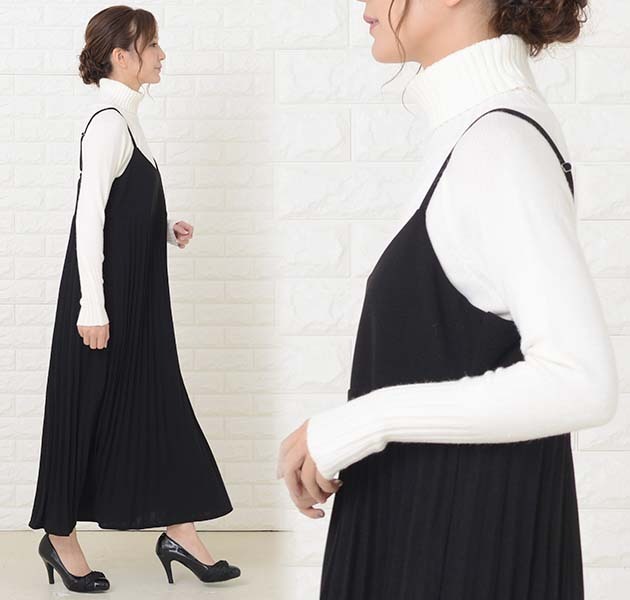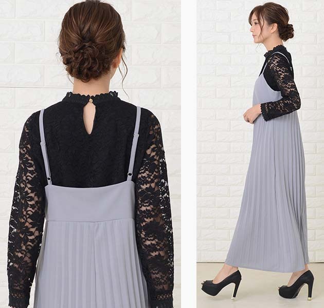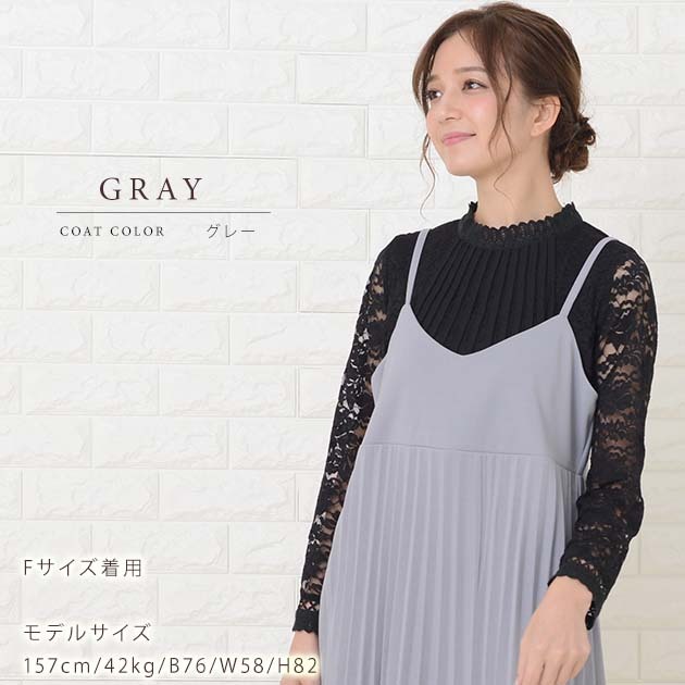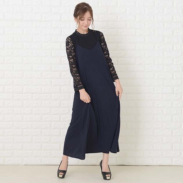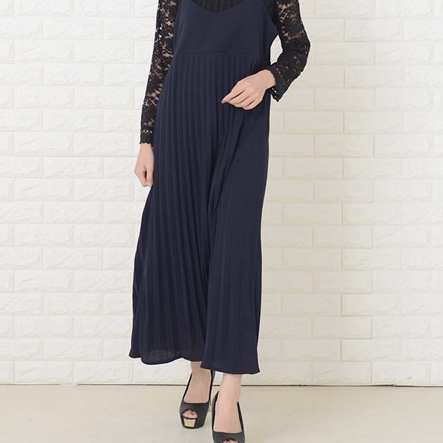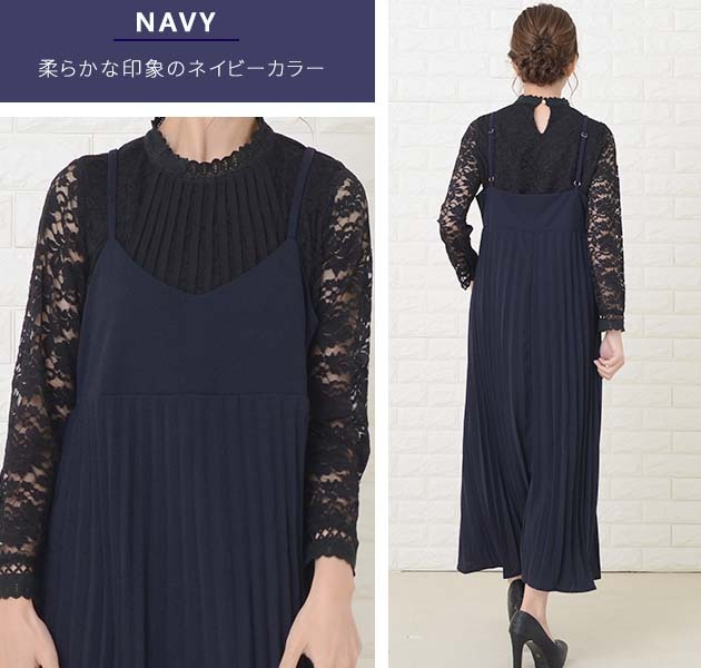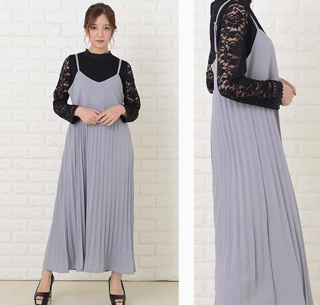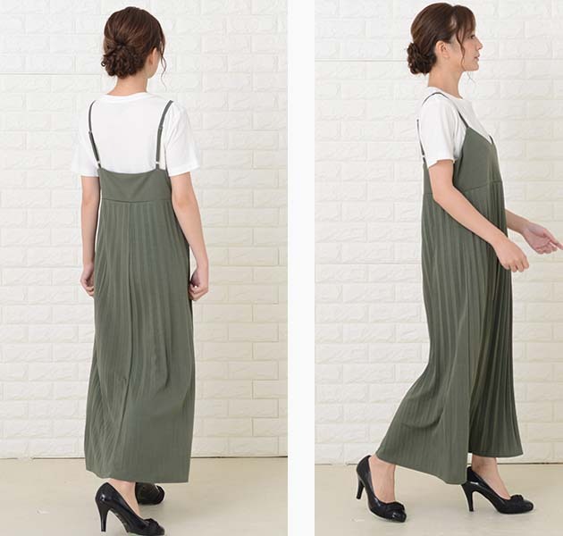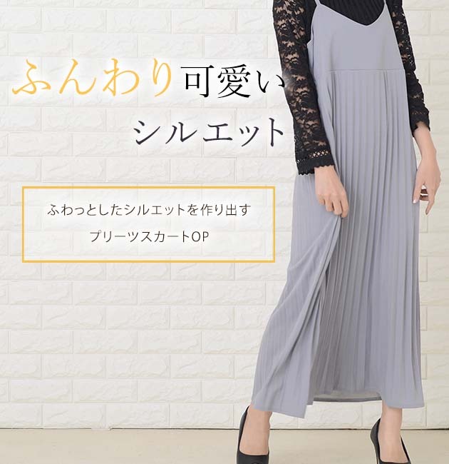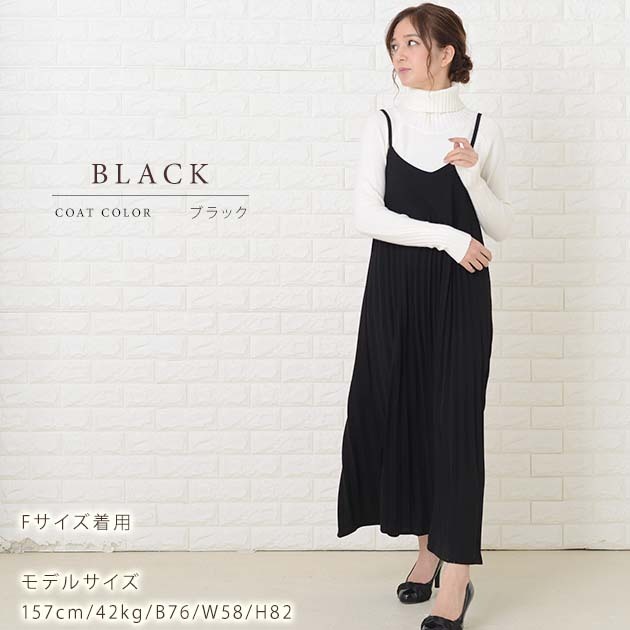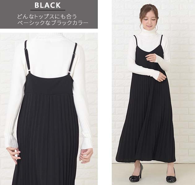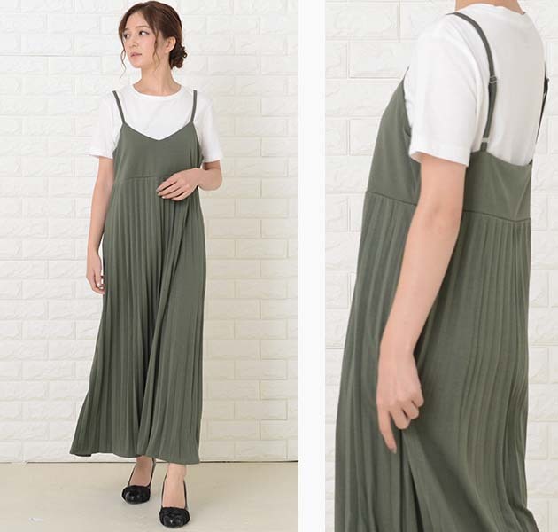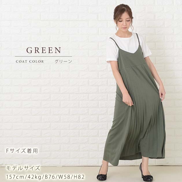 キャミプリーツワンピース ロングワンピース ノースリーブ レースワンピ レディース カジュアル 無地 シンプル サロペット プリーツ