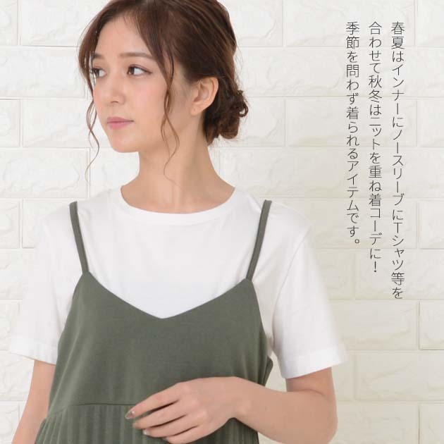 春夏はインナーにノースリーブにTシャツ等を合わせて秋冬はニットを重ね着コーデに!