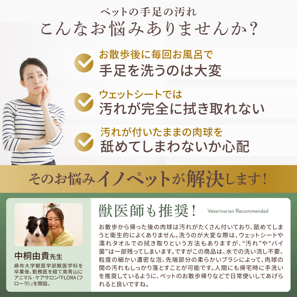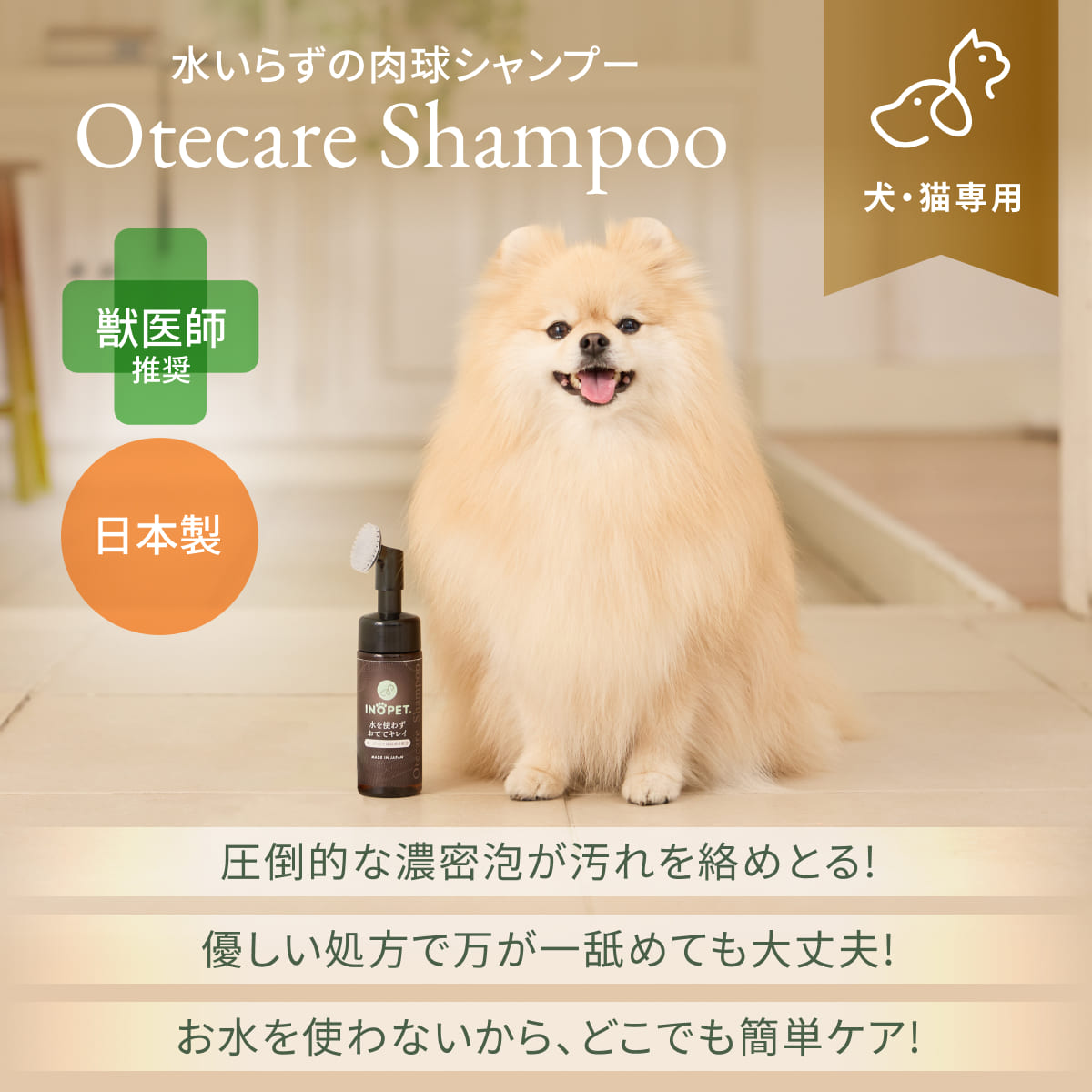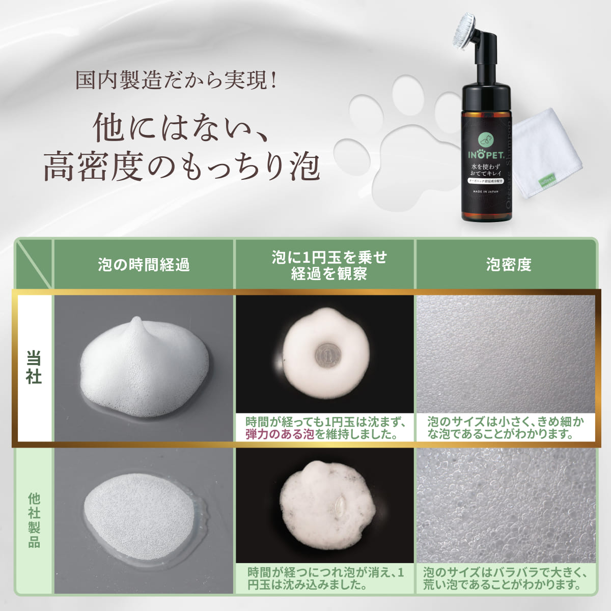 INOPET【タオルなしタイプ】 獣医師推奨 オーガニック 肉球 足裏 クリーナー 手足用 泡シャンプー 洗い流し不要 無添加 無香料 植物由来 舐めても安心 150ml
