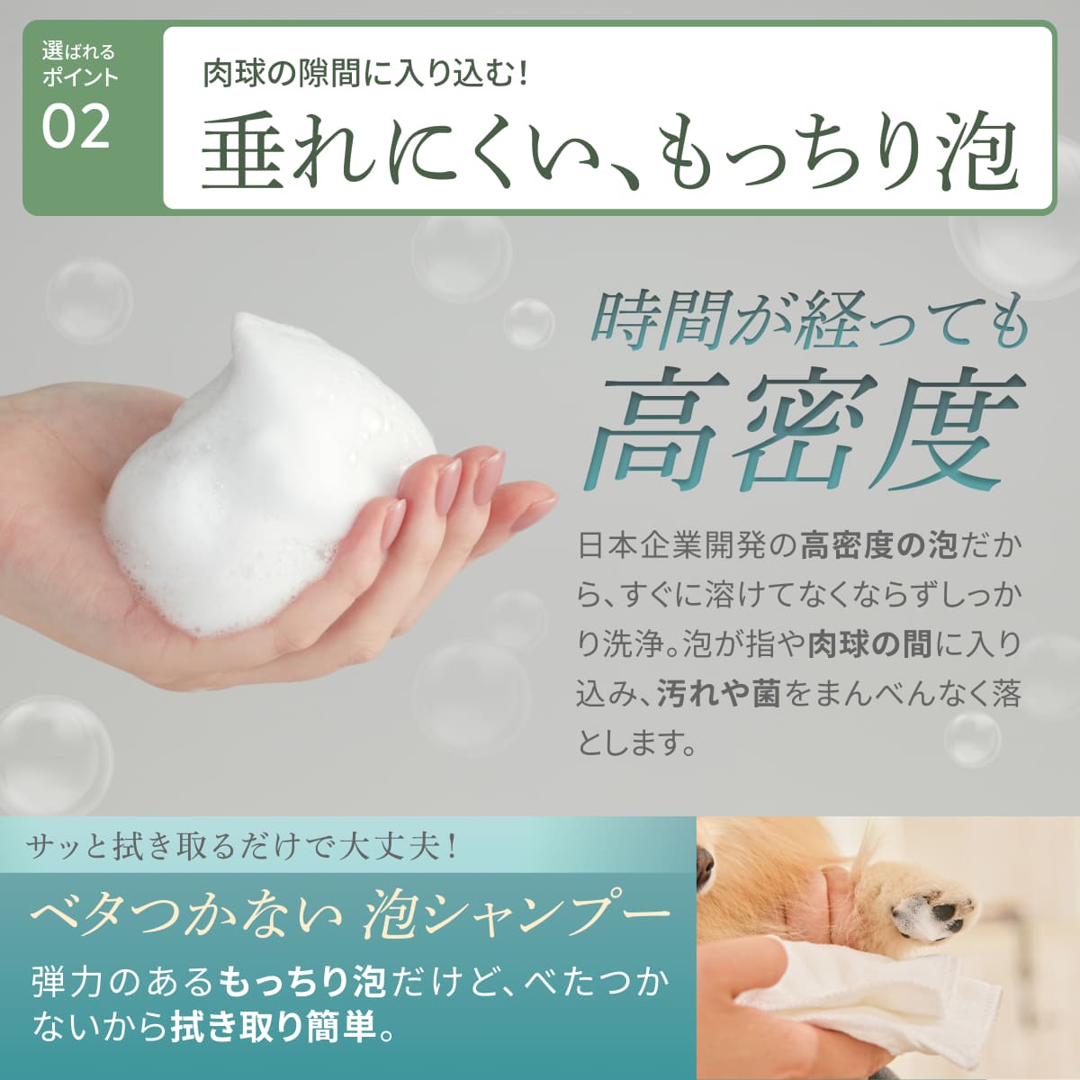 お散歩後の手足には見えない汚れがたくさん。ウェットシートだけでは不安だけど、シャンプーするのは大変。そんなお悩みを持つペット想いの飼い主さんへ向けた水の要らない肉球専用泡シャンプーが新登場!