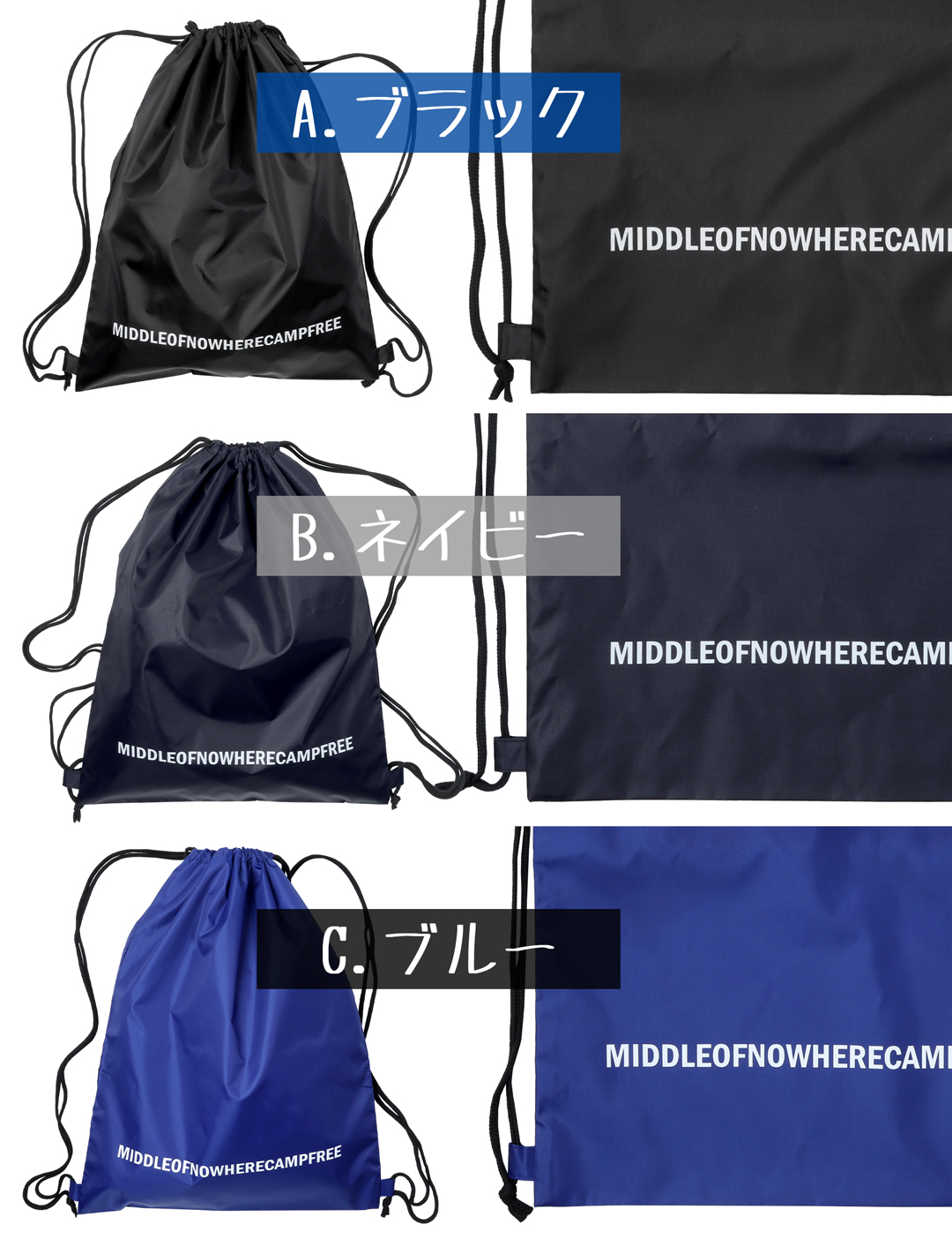 ■カラー展開 / A.ブラック・B.ネイビー・C.ブルー
