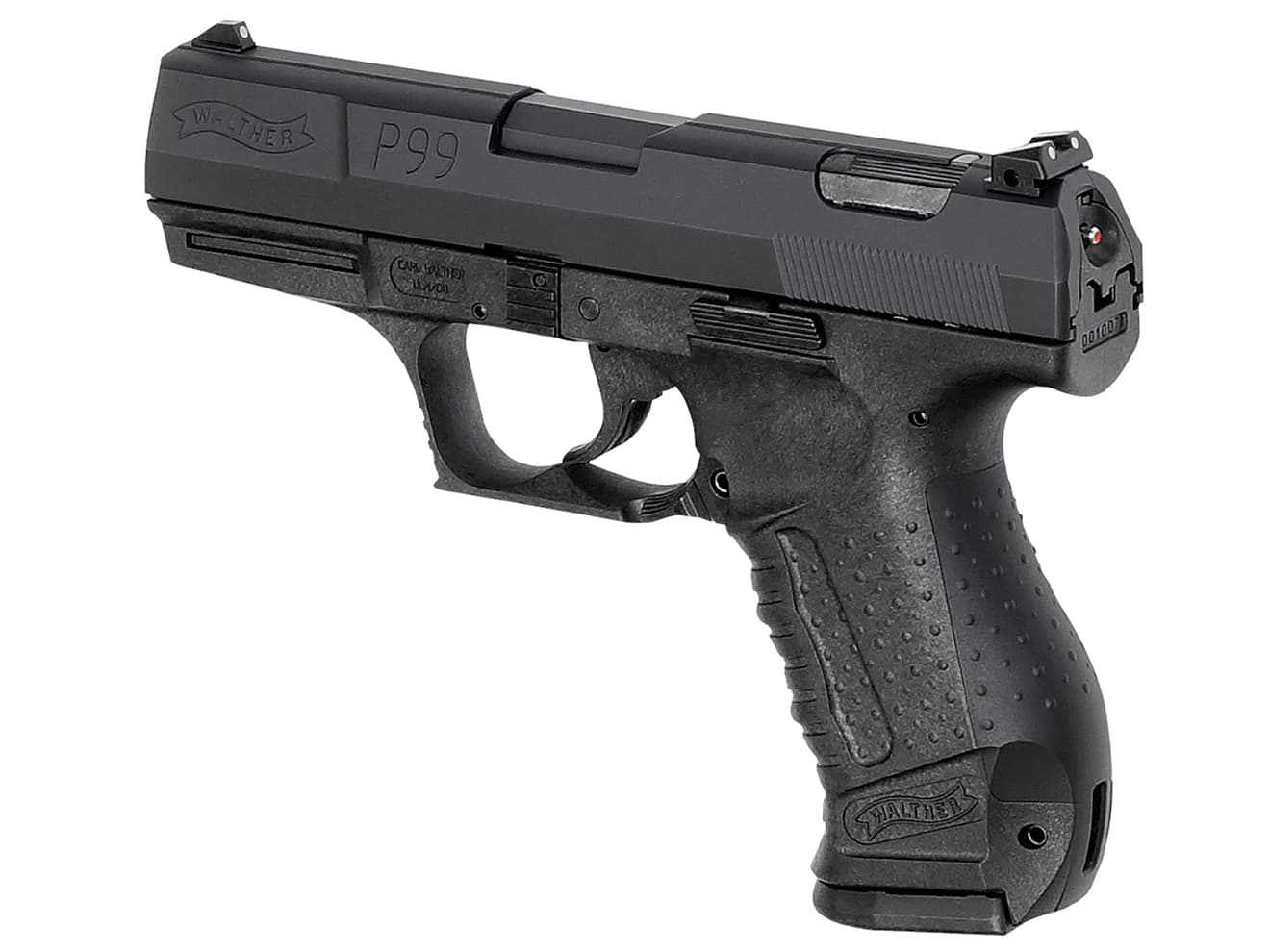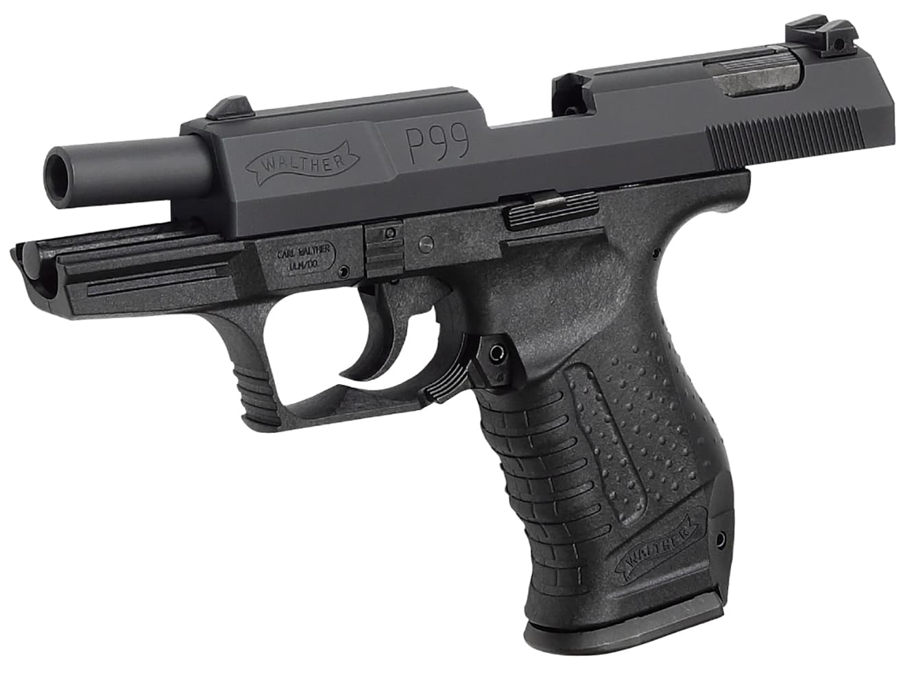 ワルサー・モデルP99ピストルは、警察・軍用向けを視野に開発された次世代大型ピストルで、 1996年のショットショーにおいてセンセーショナルに発表されました。 それまでのワルサーピストルが持つイメージと一線を画す完全新規のデザイン・コンセプトが大きく注目され話題を集めました。 P99はストライカータイプの撃発機構でありながら、ハンマー露出タイプのピストルのように、 DAとSAを撃ち分けられるという独自の機能を搭載しています。