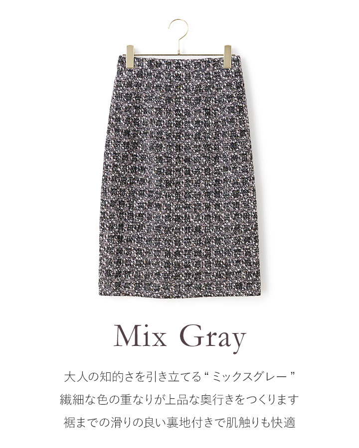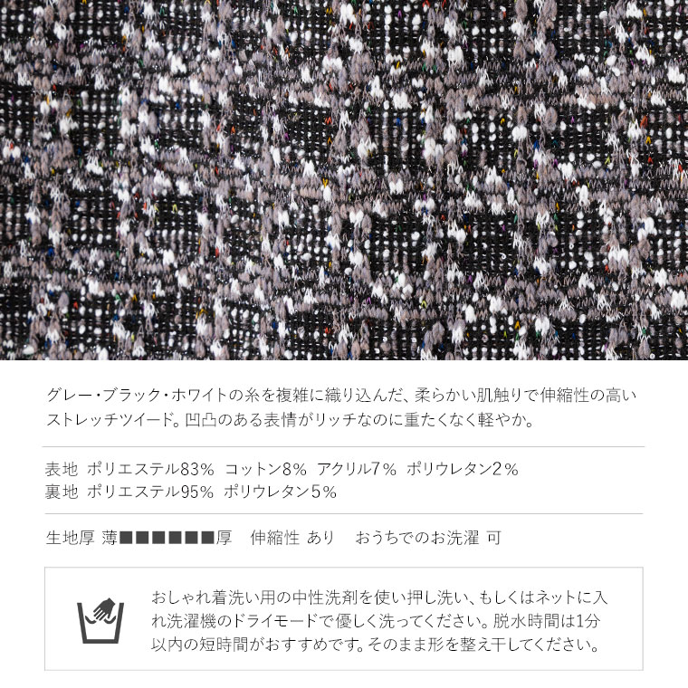 絶妙な色合いのミックスツイードが華やかで可愛く、シーズンレスで楽しめる風合いです。