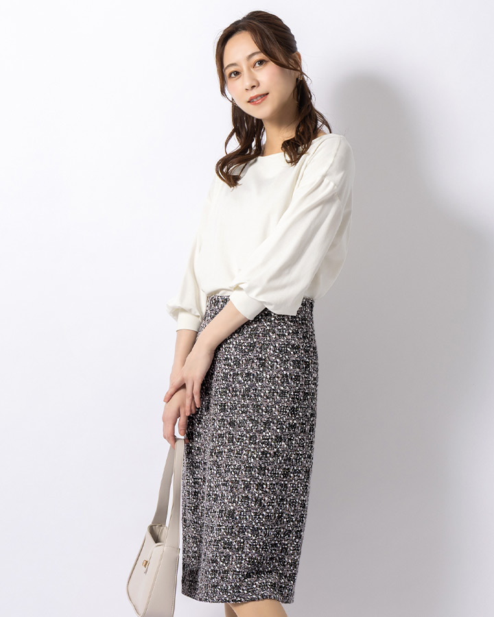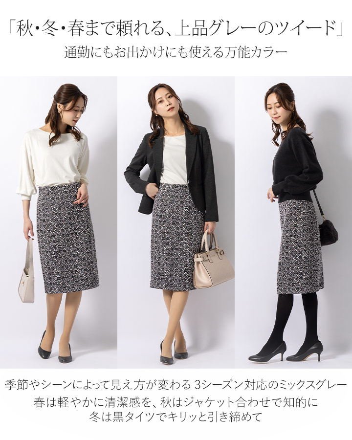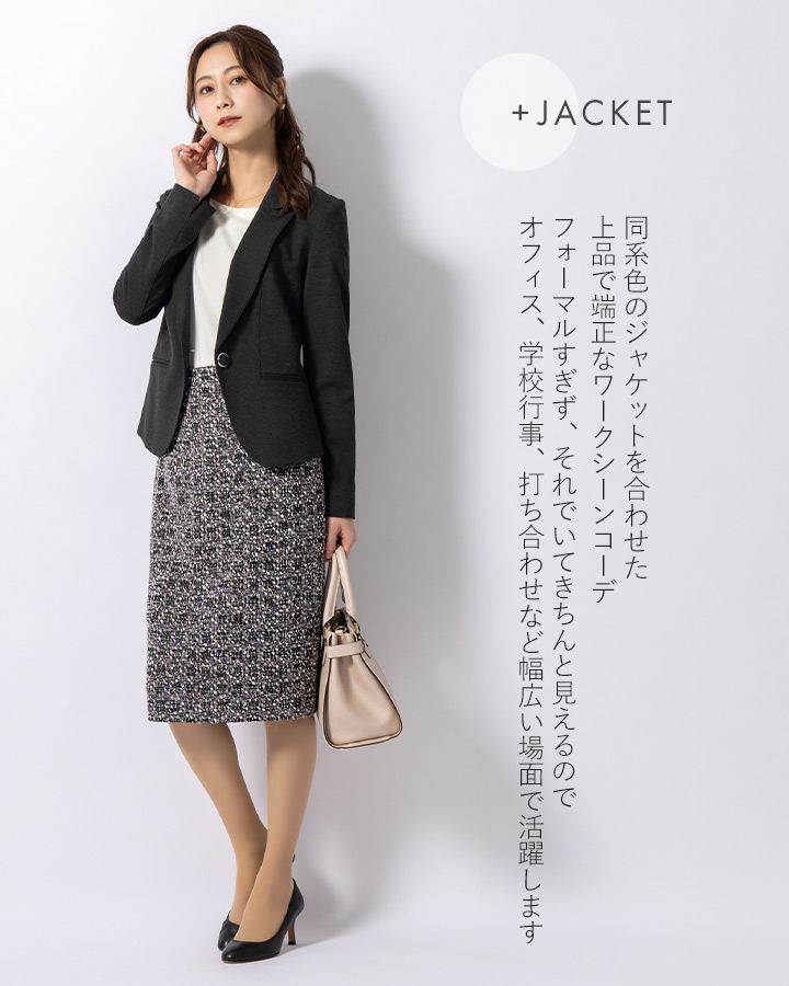 ・モデル身長161cm/スカート・ジャケットS、ブラウスMサイズ着用