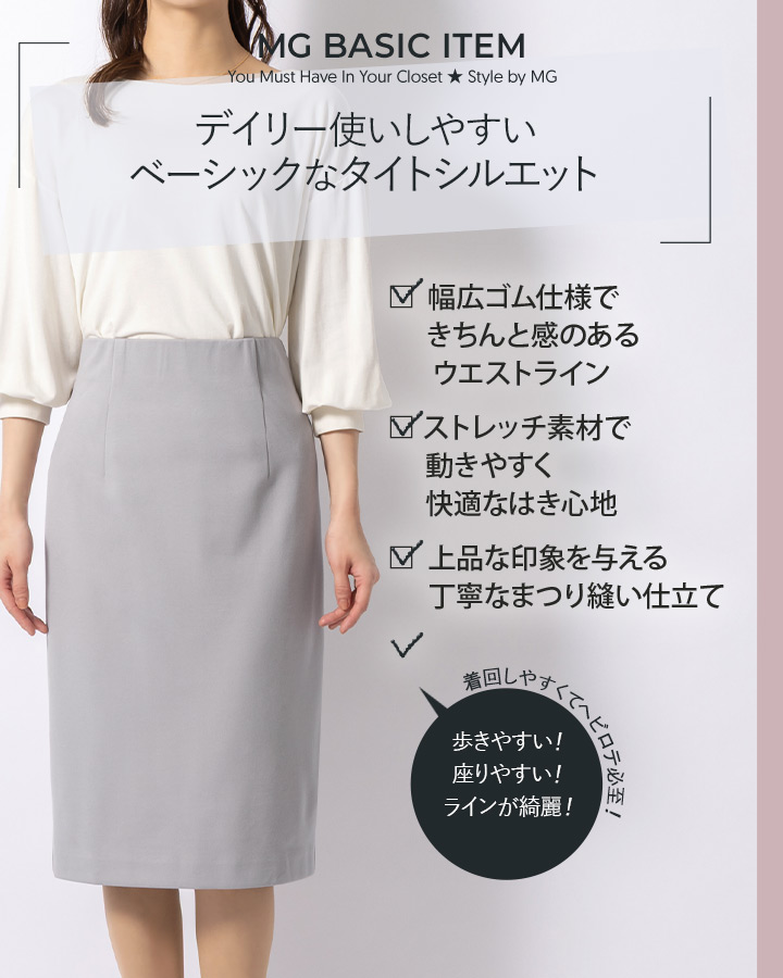 いつもミミグラントのワンピースはSサイズ、タイトスカートはSかMサイズを着用しています。