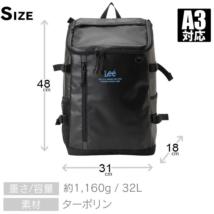 Lee リー リュック 通学 大容量 32L 320-4920 メンズ レディース 男子 女子 高校生 中学生 スクールバッグ ボックス型 撥水 ターポリン