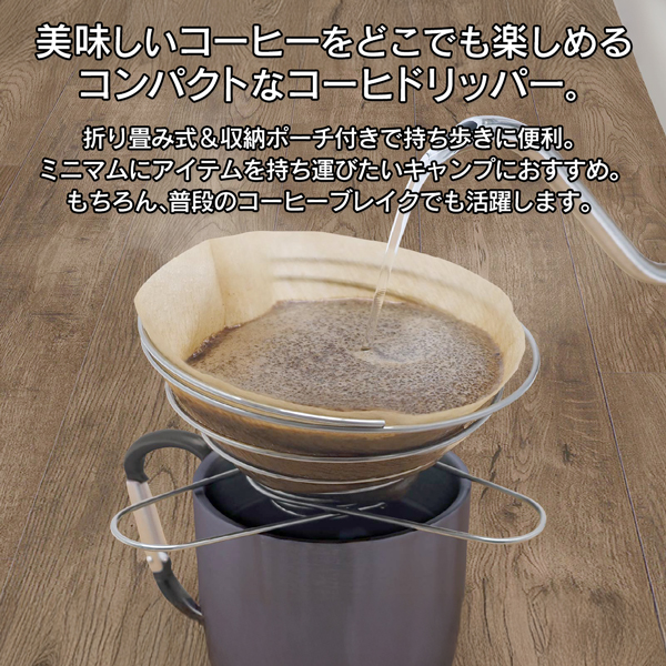 コーヒードリッパー ステンレス ワイヤー 折りたたみ フレーム 収納袋付き ハンドドリップ おしゃれ アウトドア キャンプ 珈琲 送料無料 5M◇ ドリップフレーム