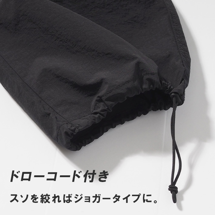 スソを絞れるのでジョガーシルエットにも可能。王道のアメカジから今っぽいストリートらしい着こなしにも対応。トップスも選ばないので合わせやすい一本。