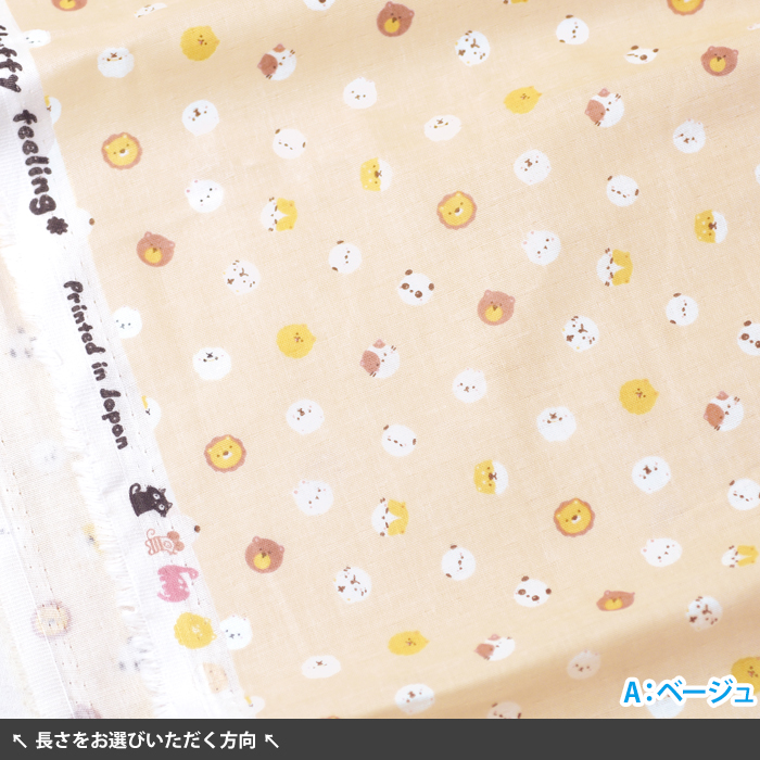 ころころアニマルズ ダブルガーゼ うさぎ パンダ シマエナガ ライオン くま 猫 うさぎ トラ 犬 生地 布 COCO2530-3 数量3(30cm)から10cm単位 8279