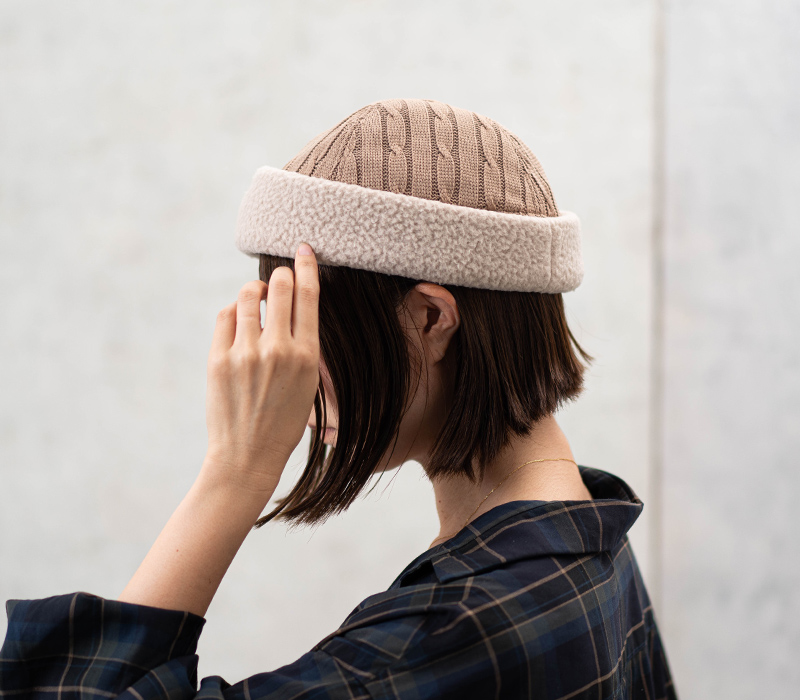 こういったツバのない帽子は顔が主張されやすく、苦手意識を持っている方も多いかと思うのですが