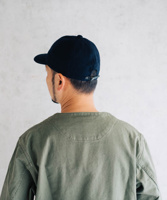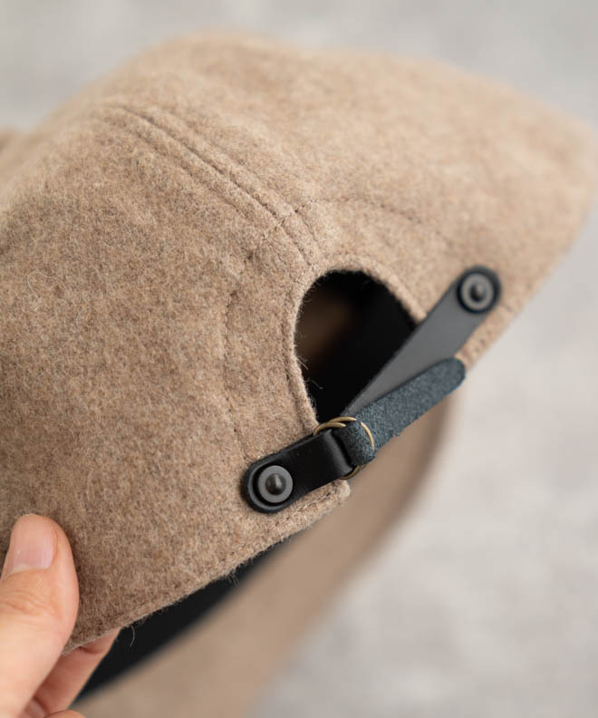HIGHER定番のキャップ型に落とし込み、背面にある上質な牛皮革のレザーベルトでサイズ調整が可能です。
