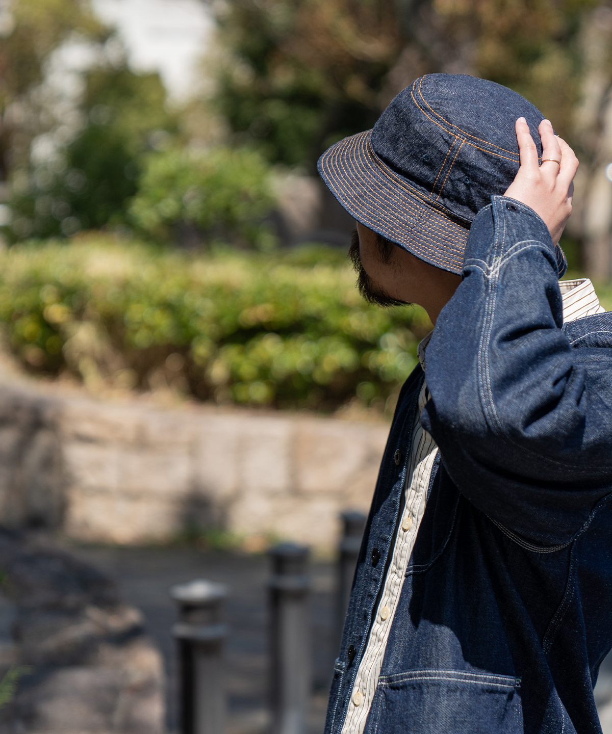 19世紀のデニムを再現したセルビッジ生地を使用したバケットハット。
